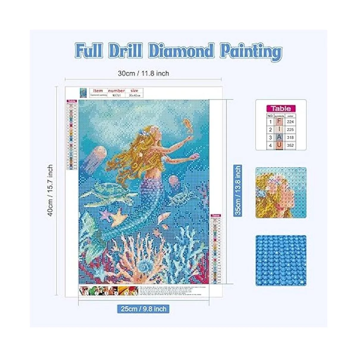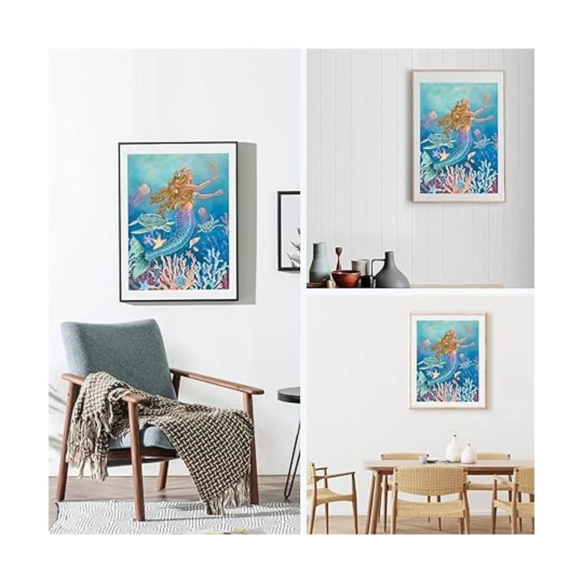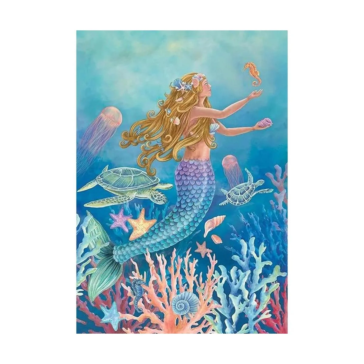 NAIMOER Mermai Kits de pintura de diamantes para adultos, taladro completo 5D, arte de diamantes náuticos para peces 12 x 16 pulgadas para decoración de pared del hogar sirena de arte de diamante