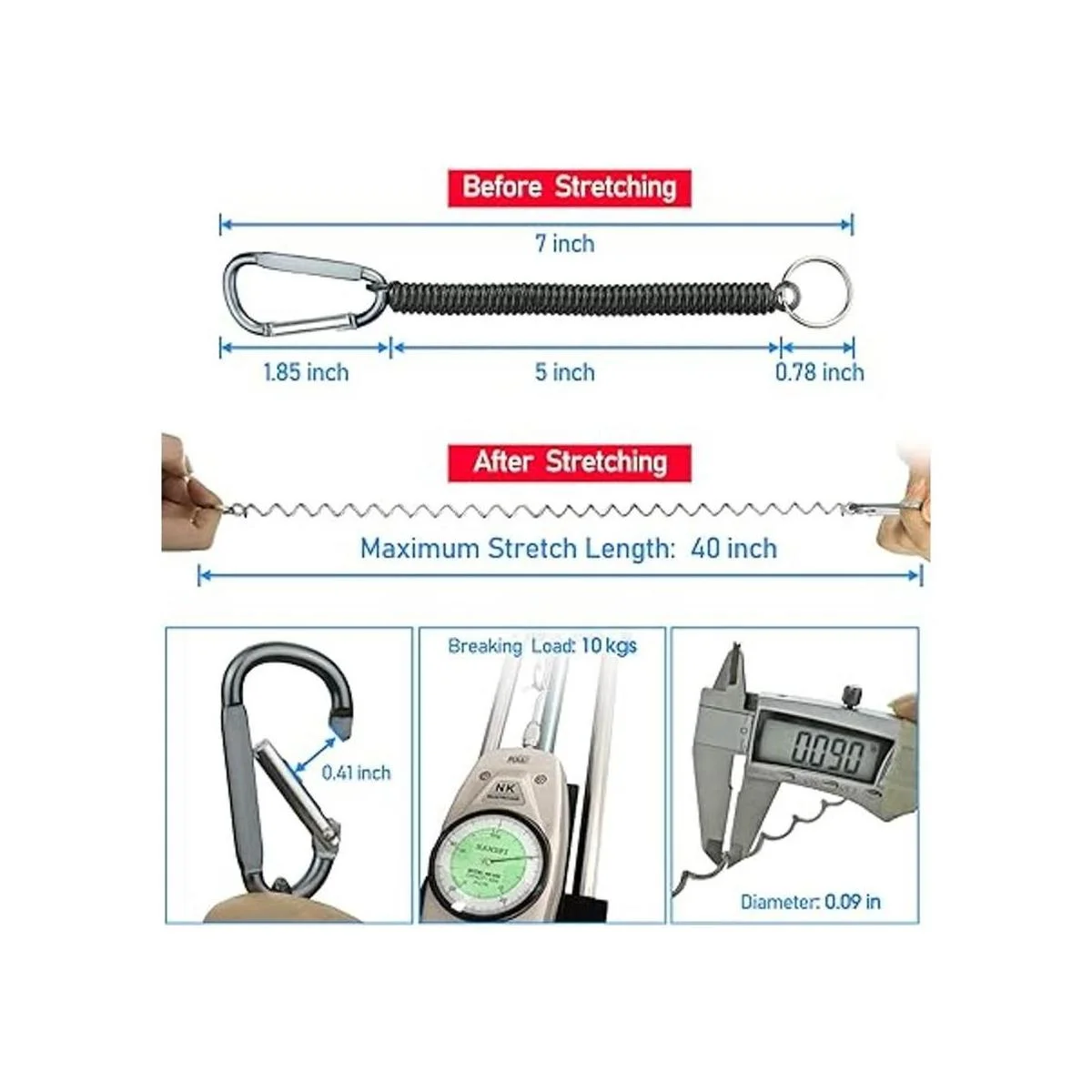 2. Diseño de característica: el anillo de acero inoxidable se utiliza para cubrir llaves, bolsos o cañas de pesca, alicates, reglas y otras cosas, el mosquetón en la cintura, mochila, barco y estirar la cuerda de resorte para conectar accesorios u otras pequeñas herramientas para evitar pérdidas, los mantiene en contacto contigo cuando lo necesites.