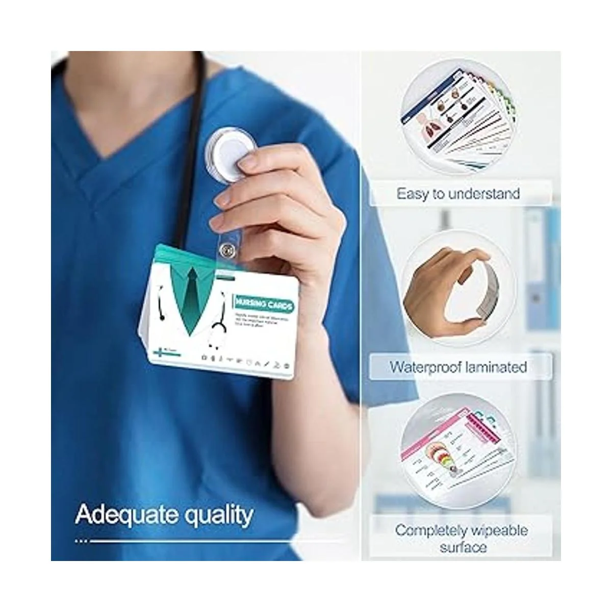 Tarjetas preperforadas: cada tarjeta está hecha de material de calidad con un acabado brillante para una fácil limpieza. Las tarjetas se mantienen cómodamente juntas en un material duradero cada tarjeta está preperforada, fácil de llevar contigo en la escuela, en rotaciones clínicas o en el trabajo.
