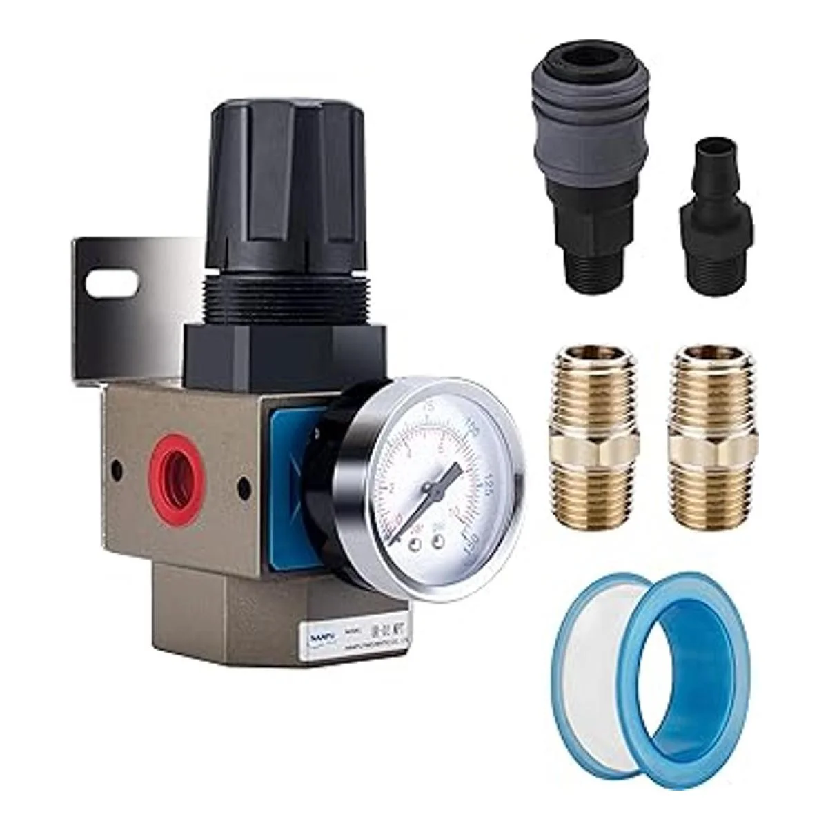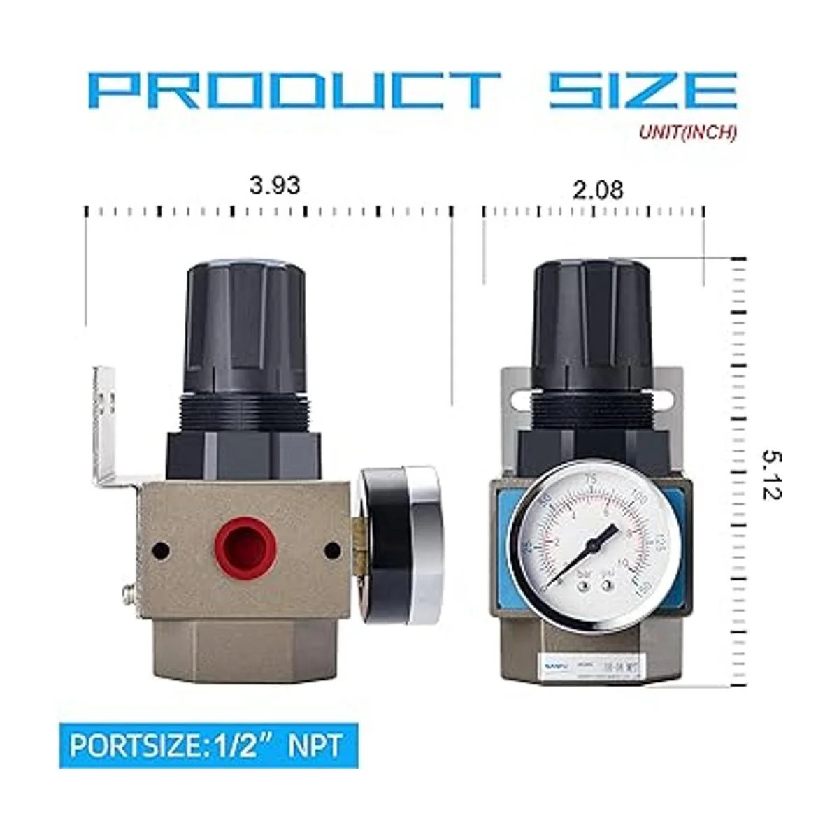 NANPU 12 NPT regulador de aire comprimido, 150 psi de acero protegido Dial GaugeMetal Bracket, para compresor de aire y herramientas neumáticas