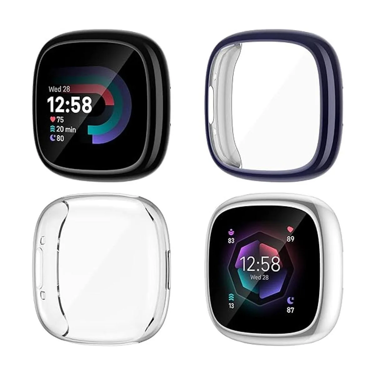 NANW Paquete de 4 fundas protectoras de pantalla compatibles con Fitbit Sense 2Versa 4, fundas protectoras de poliuretano termoplástico suave para reloj inteligente Versa 4Sense 2 a prueba de arañazos