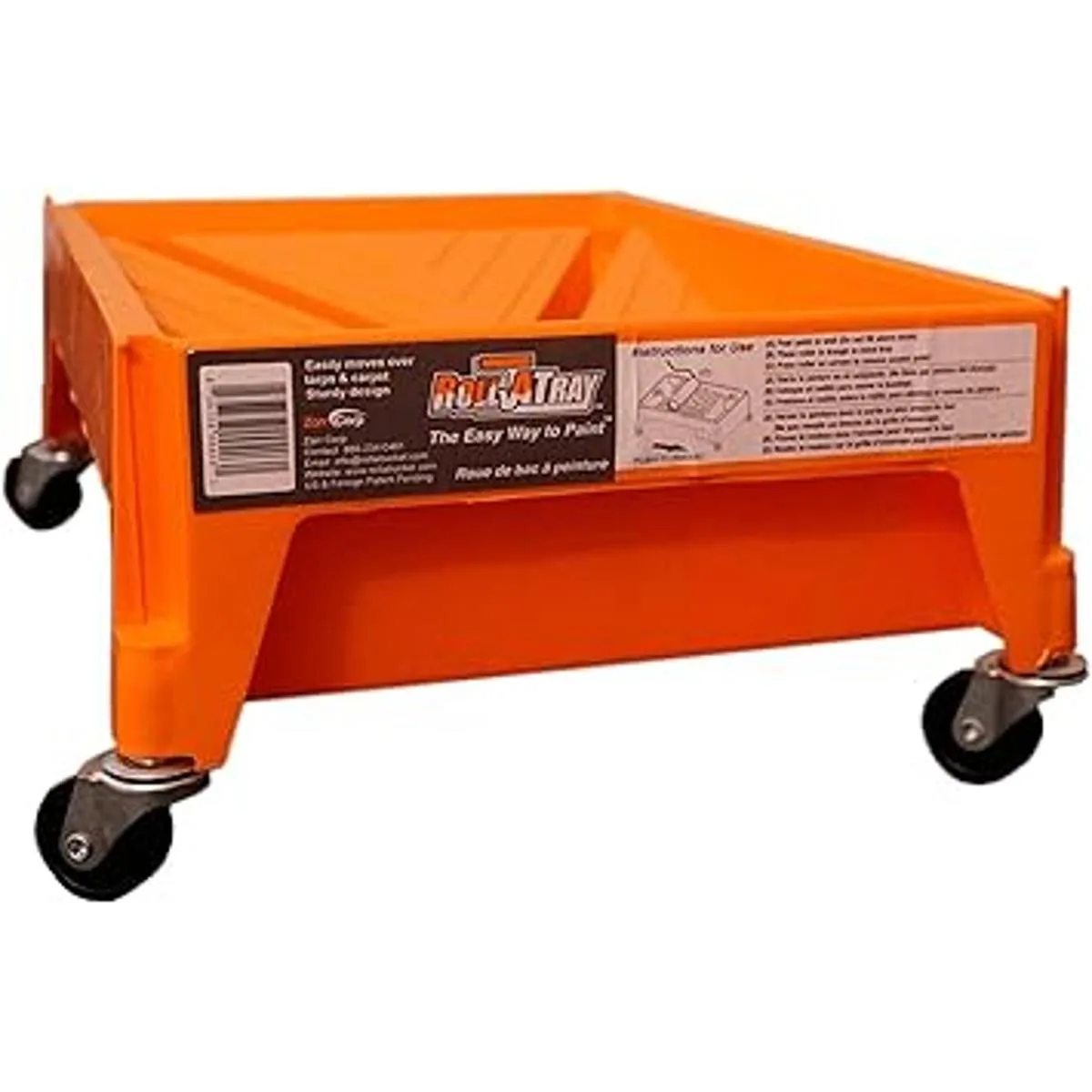 Naranja; bandeja de pintura sobre ruedas, rollo de una bandeja