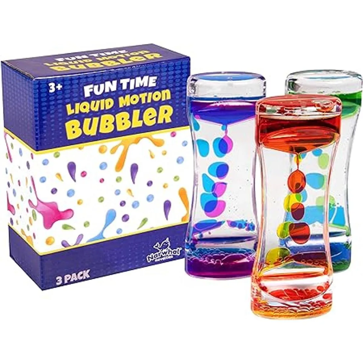Narwhal Novelties Bubbler líquido de movimiento para niños y adultos reloj de arena líquido Bubblertemporizador para juguetes sensoriales, juguete Fidget y gestión del estrés paquete de 3