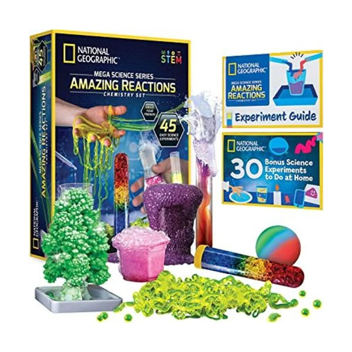 NATIONAL GEOGRAPHIC Kit de química increíble Megakit de química con más de 15 experimentos científicos, crea gusanos brillantes, un árbol de cristal, soluciones efervescentes y mucho más, gran regalo de STEM para niñas y niños