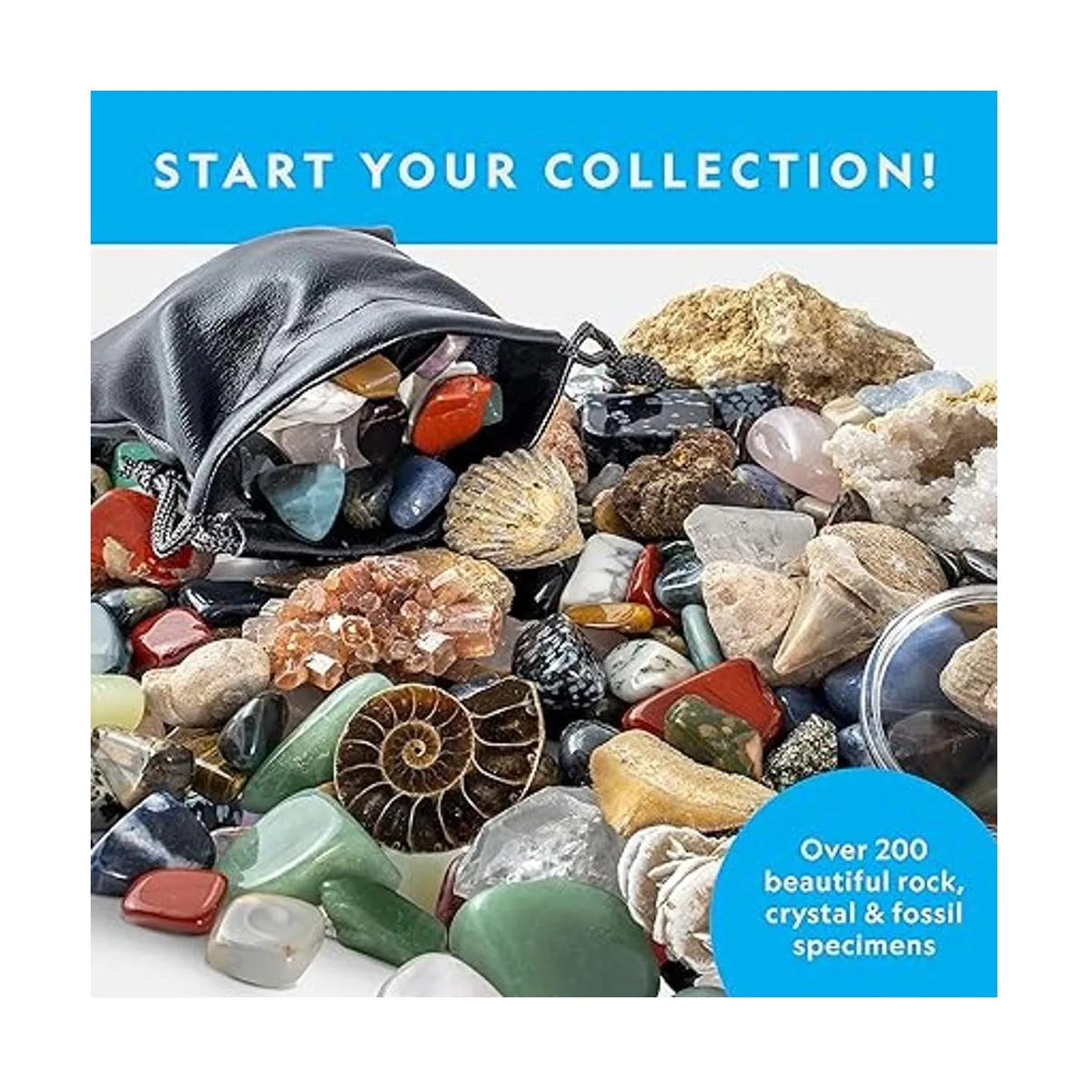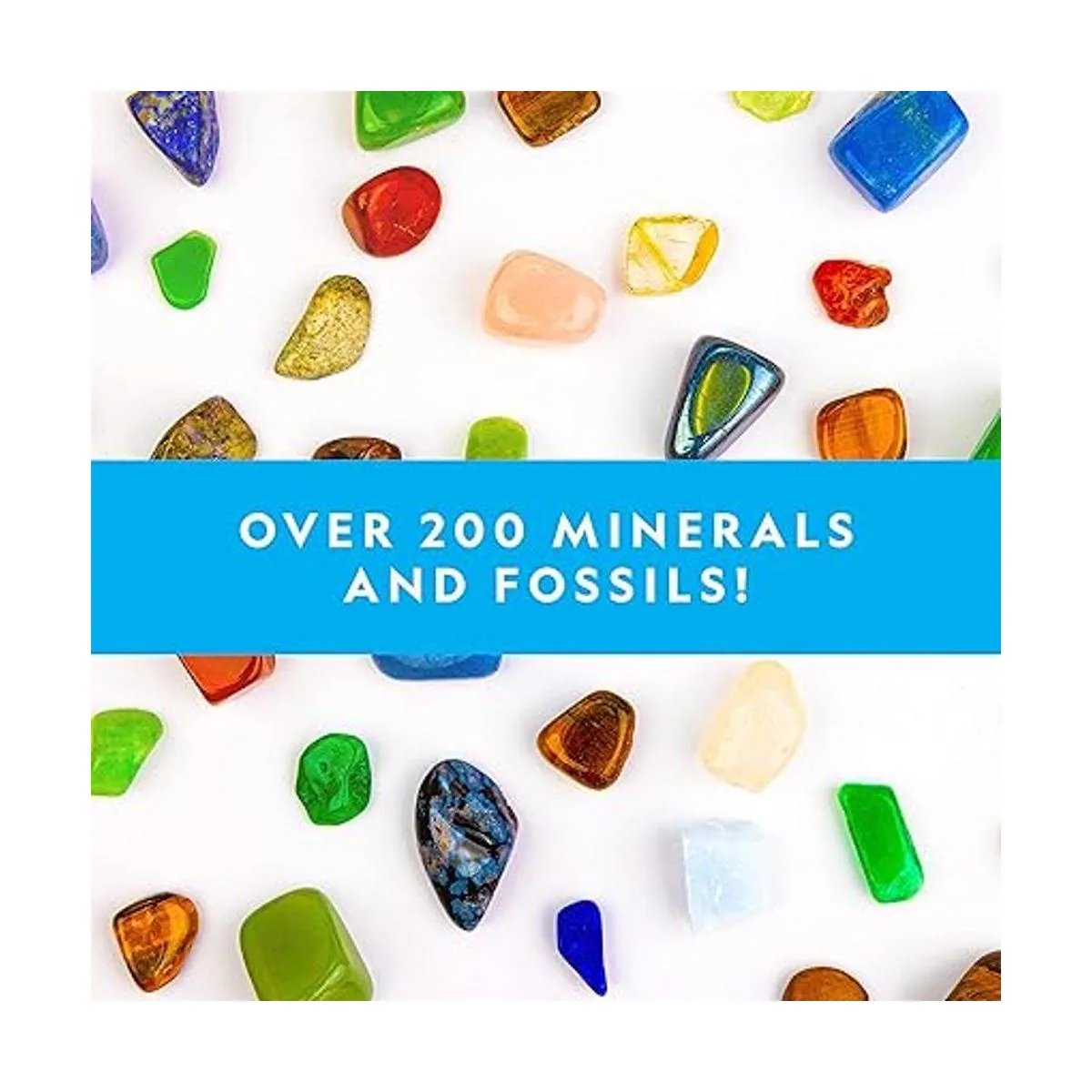 Fósiles auténticos: los fósiles reales incluyen gasterópodos prehistóricos, ammonitas, almejas, braquiópodos y mucho más. La lupa incluida, la guía de aprendizaje a todo color y la hoja de identificación te ayudarán a ordenar e identificar cada roca, piedra preciosa, mineral y fósil de la colección.