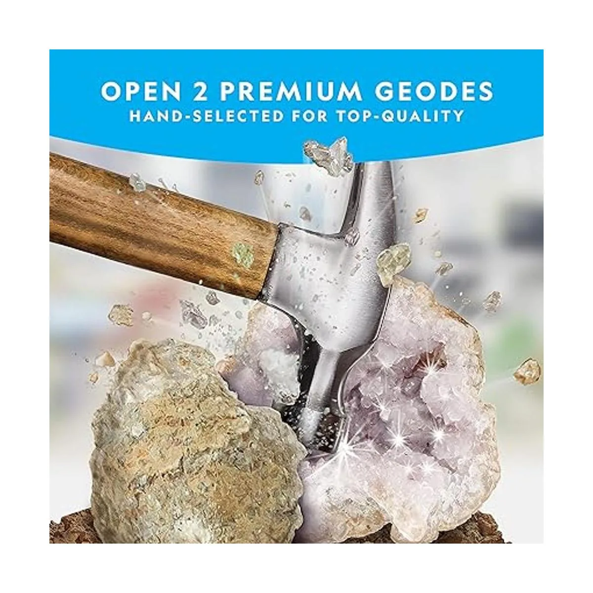 GEODES REALES Descubre tesoros de cristales Cada kit contiene una geoda rota y dos especímenes de geoda sin romper para que puedas abrirte tú mismo. La geología no se vuelve más emocionante que romper rocas abiertas y encontrar tesoros de cristal.