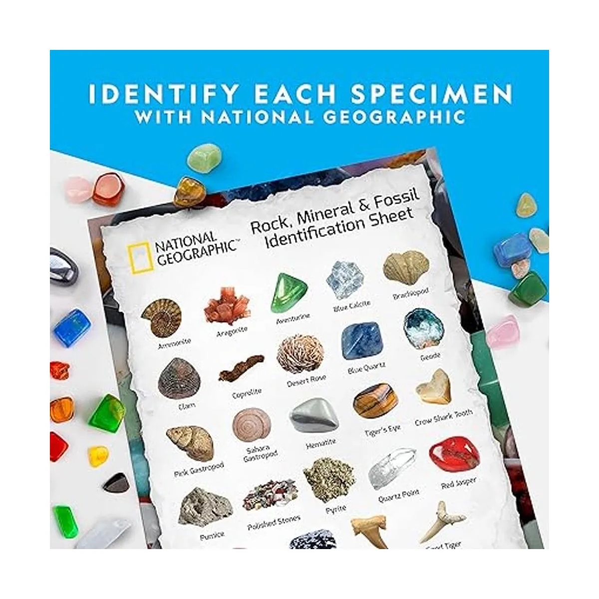 NATIONAL GEOGRAPHIC Kit de rocas y fósiles El juego de más de 200 piezas incluye geodas, fósiles reales, cuarzo rosa, jaspe, aventurina y muchas más rocas, cristales y piedras preciosas