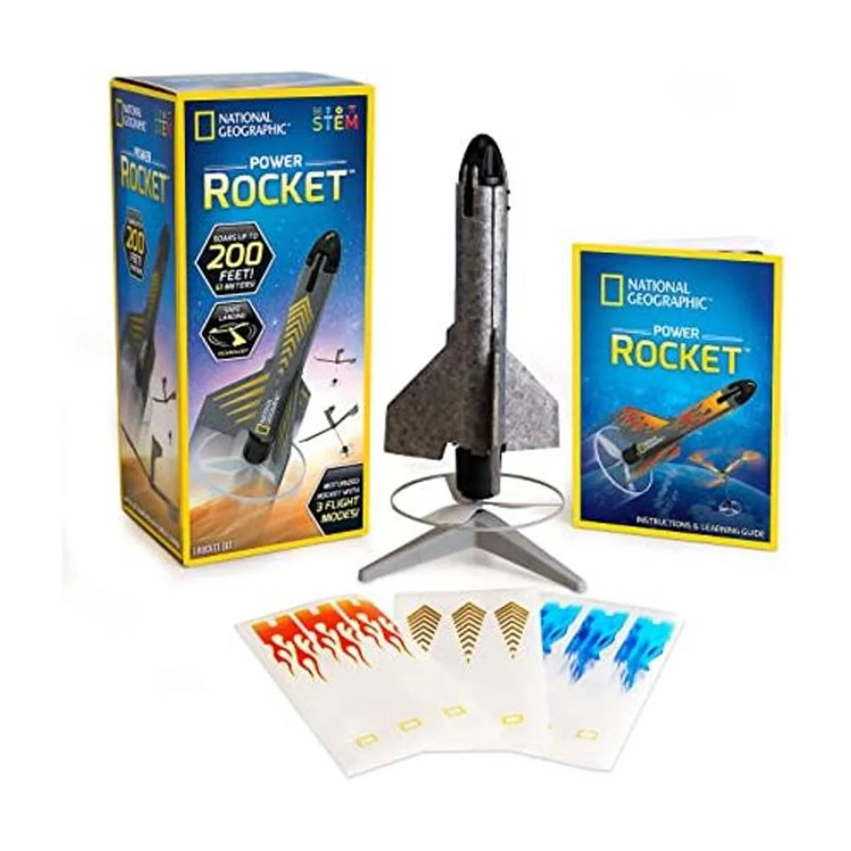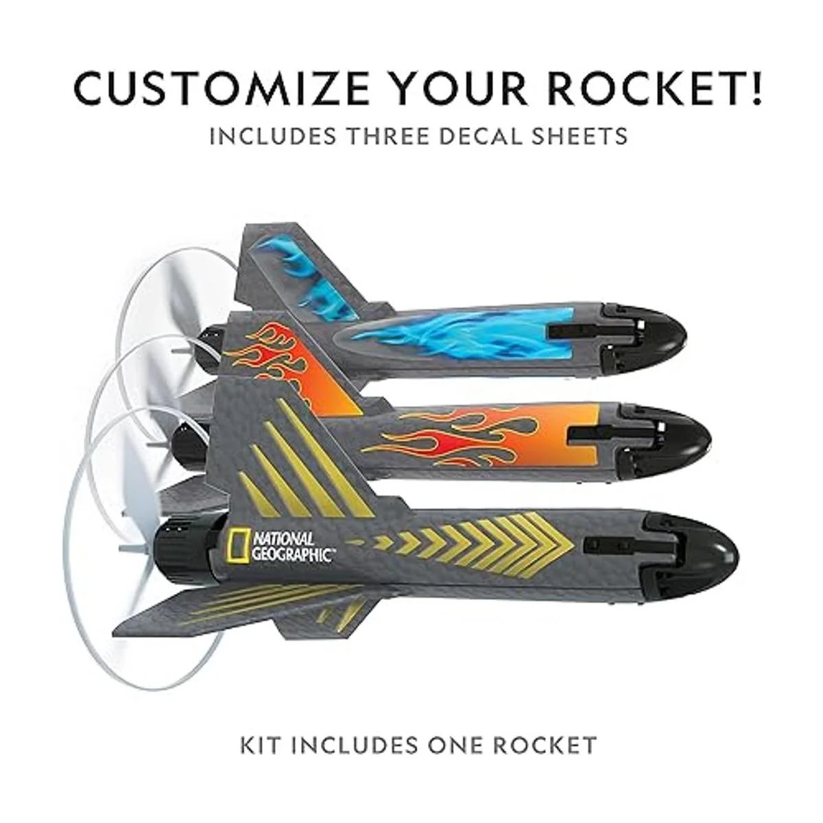 NATIONAL GEOGRAPHIC Lanzador de cohetes para niños juguete de cohetes aéreos motorizado pendiente de patente, lanza hasta 200 pies con aterrizaje seguro, una innovación en juguetes de exterior para niños y cohetes modelo