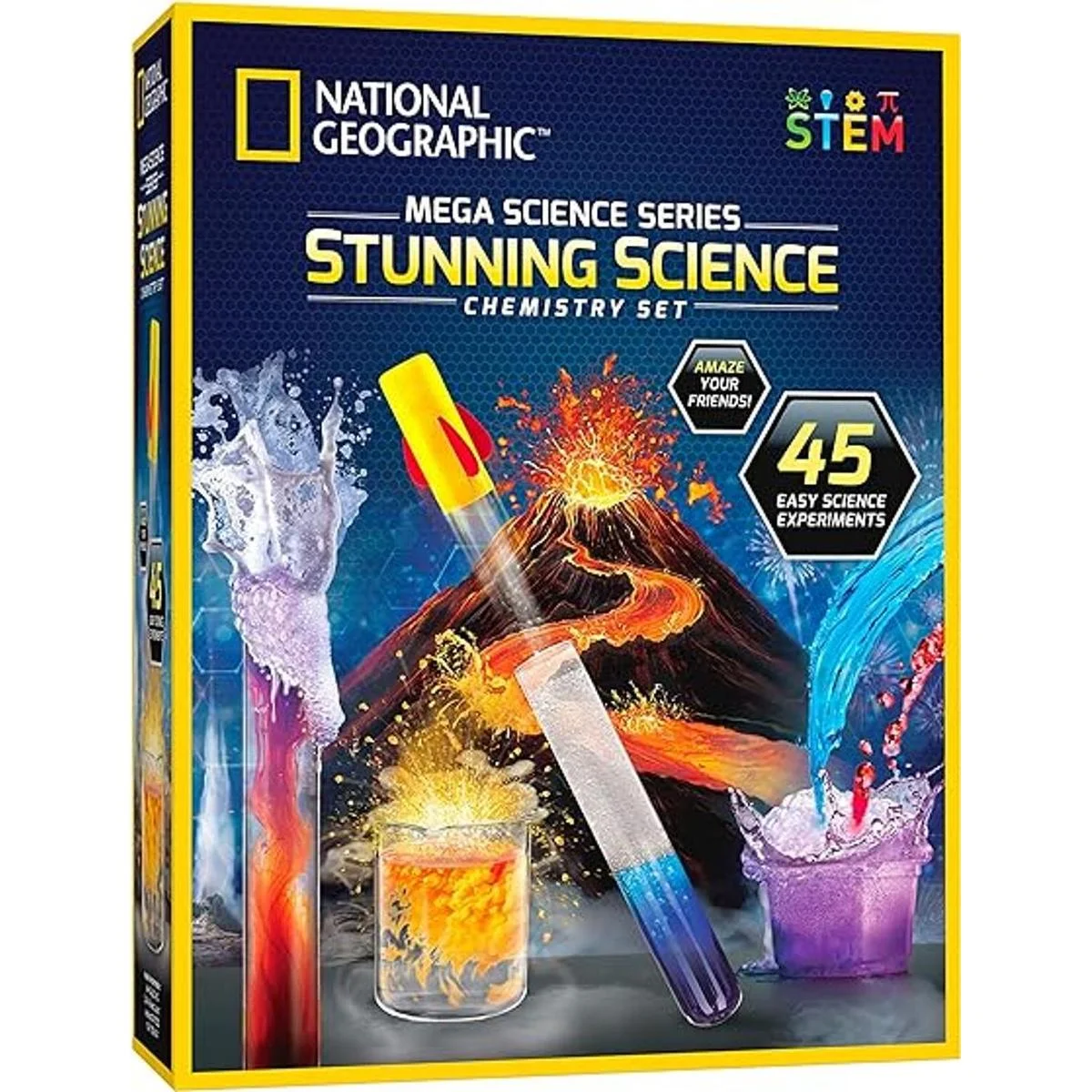 NATIONAL GEOGRAPHIC Mega Science Kit de química con más de 15 experimentos fáciles, crea un volcán, lanza un cohete, provoca reacciones efervescentes y mucho más, juguete de STEM, un kit de ciencia exclusivo de Amazon