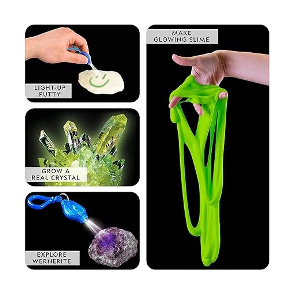 Todo lo que los niños necesitan: haz tu propio slime, cultiva tu propio cristal, haz que la masilla se ilumine y maravíllate con un espécimen de roca fluorescente wernerita