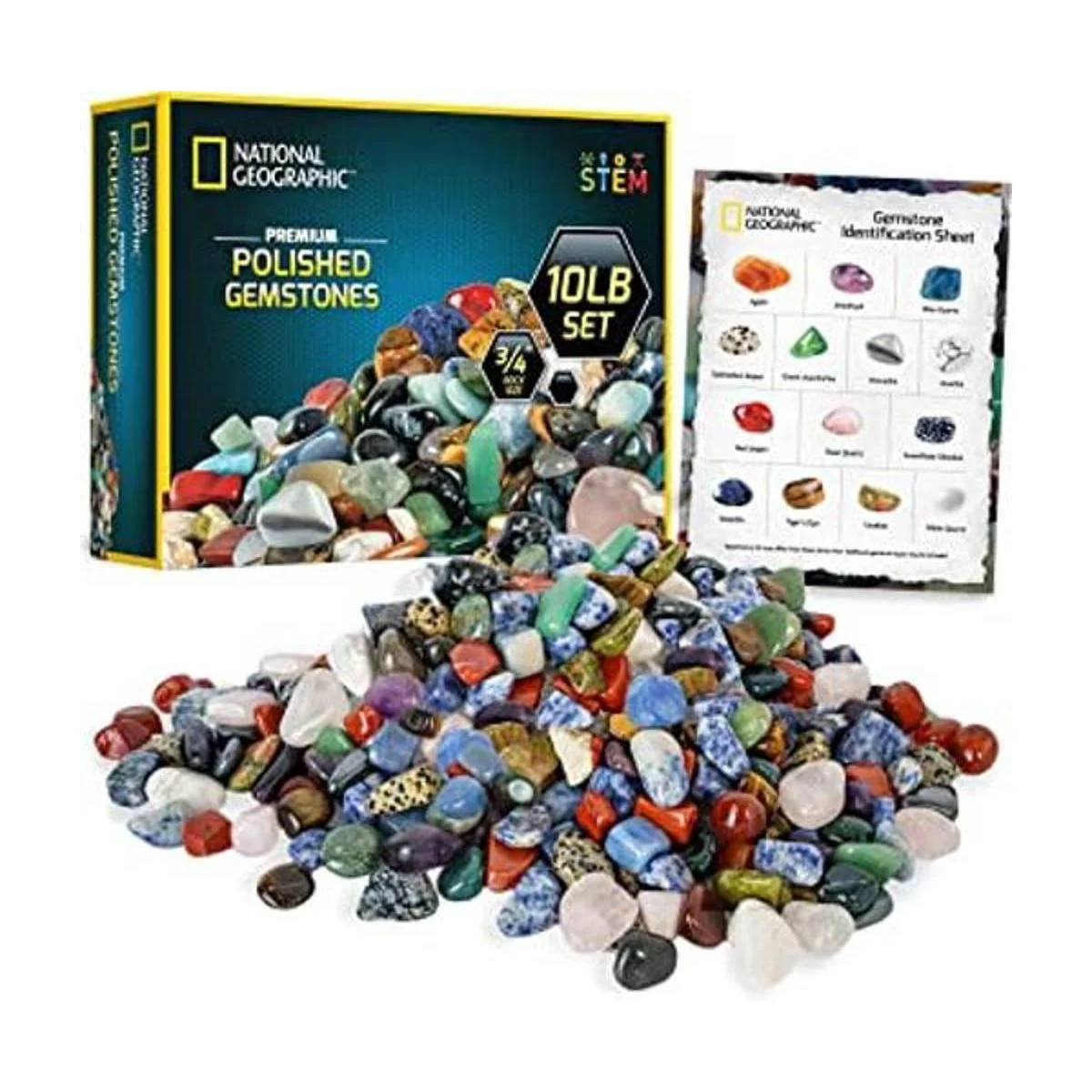 NATIONAL GEOGRAPHIC Piedras preciosas pulidas de calidad, piedras y cristales de 0.25 y 0.75 a granel, uso para grava de acuario, roca de río, guijarros para plantas, rellenos de jarrones, colecciones de rocas para niños interesados en la ciencia