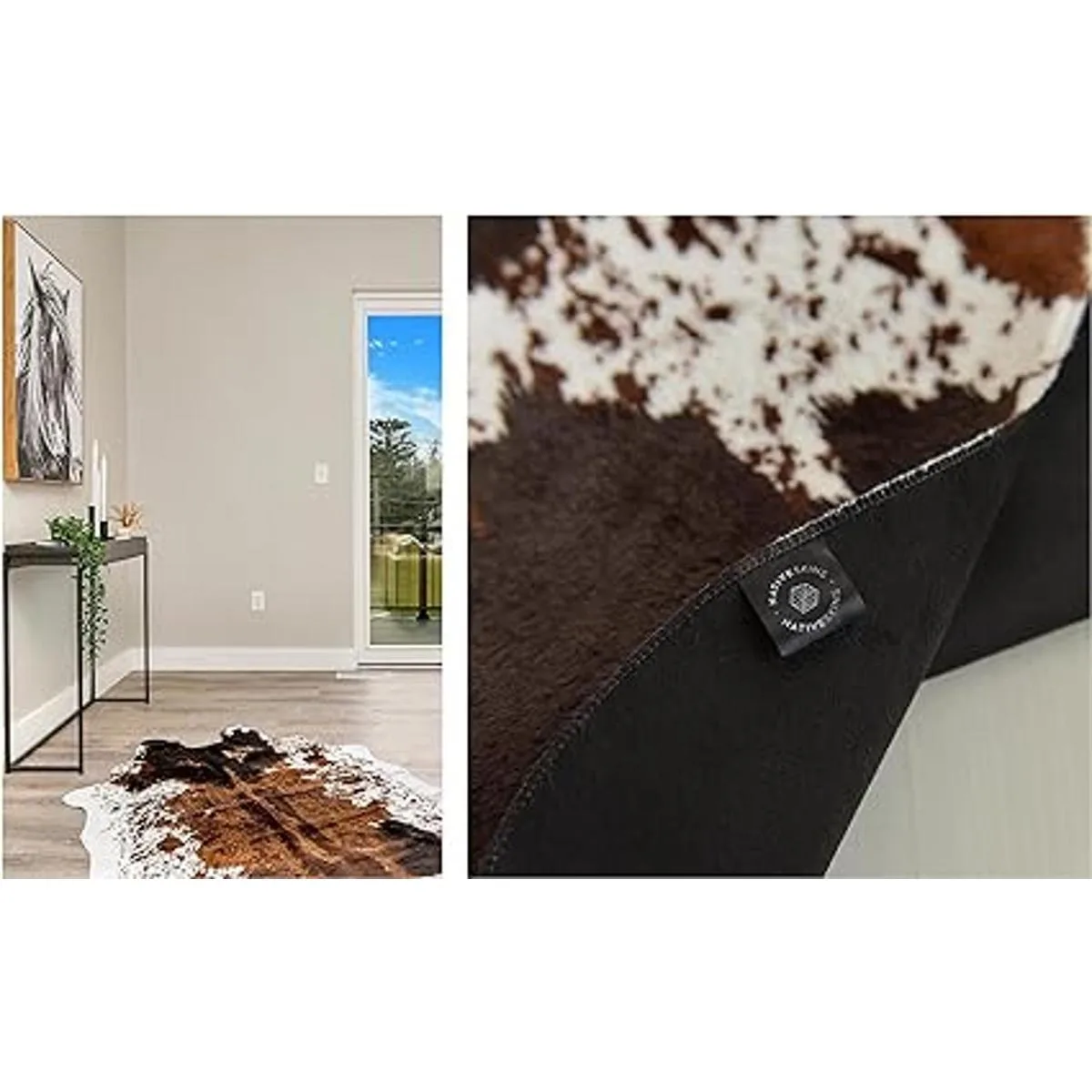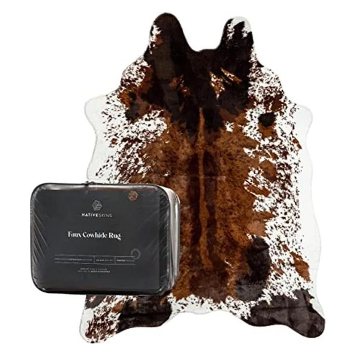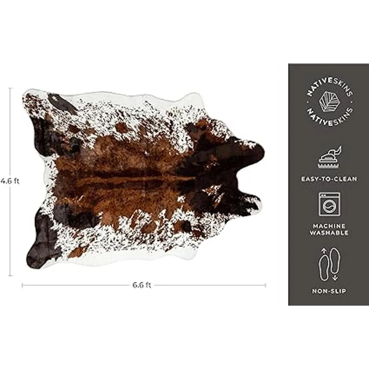 NativeSkins Alfombra de piel de vacuno de imitación tamaño grande, 4.6 pies x 6.6 pies, diseño de vaca, para decoración boho occidental, sintético y libre de crueldad con respaldo antideslizante