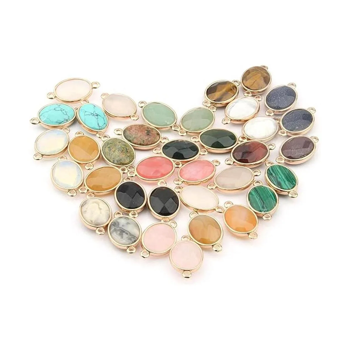 Natural Stone Connectors Faceted Egg Shape Stone Pendant Links Charms for Jewelry Making random 10 Pcs