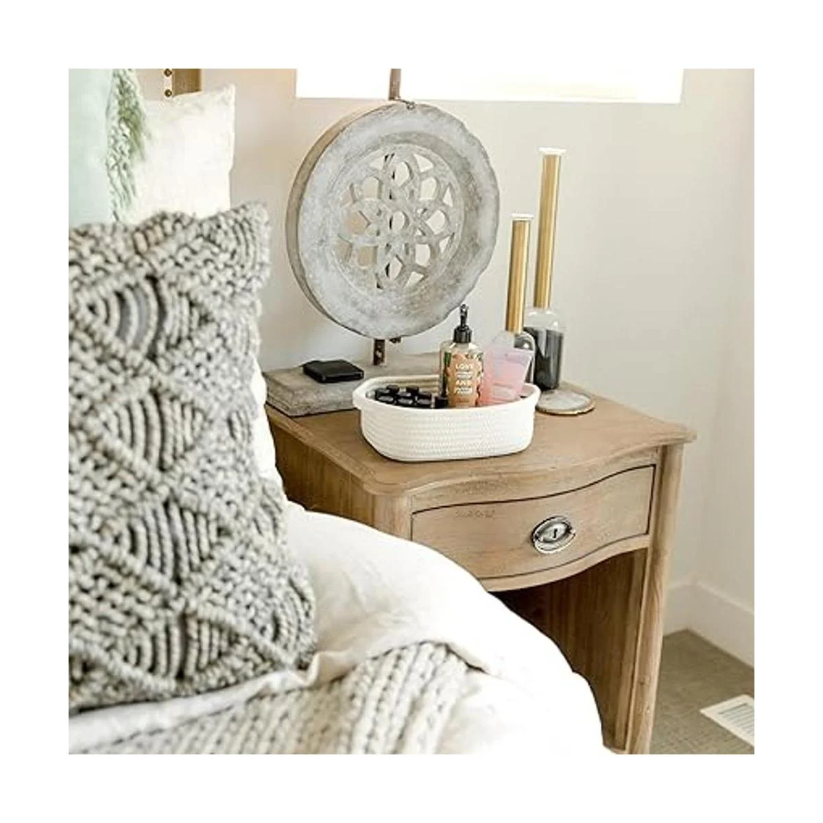 Diseño doble reforzado y sin arañazos: cuando eres una mamá o papá a tiempo completo, necesitas una solución de almacenamiento que funcione tan duro como tú. Con costuras reforzadas en las asas y la base, nuestro juego de cestas de almacenamiento tejidas está listo para hacer frente a algunas acciones de alta resistencia y mantendrá el juego más duro para niños. Con nuestros diseños suaves pero firmes de cesta de cuerda tejida a mano, nunca tendrás que preocuparte por arañazos o marcas que queden en tu mesa de café, estante, mesa de puerta delantera, mesita de noche o cualquier mesa.
