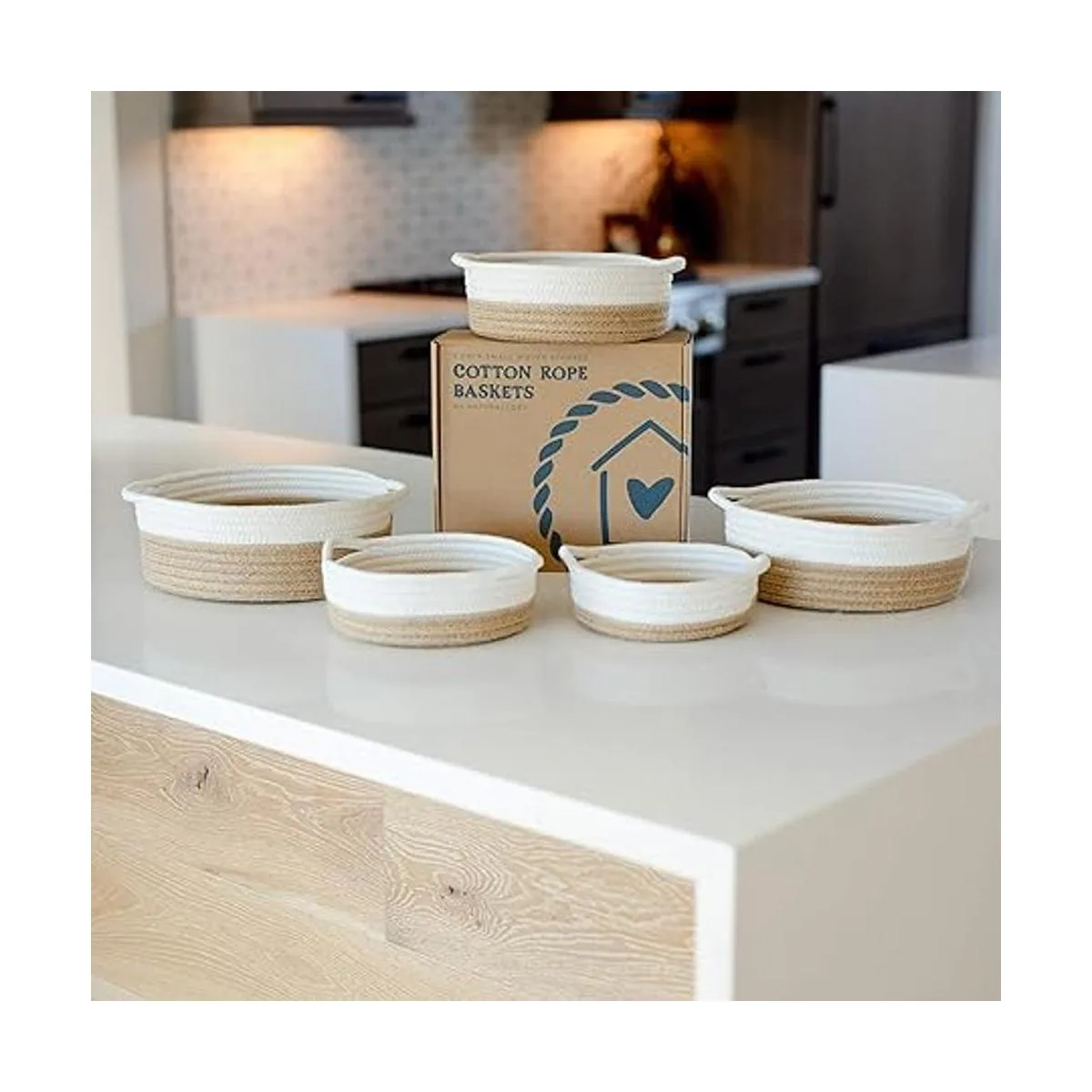 NaturalCozy Juego de 5 cestas redondas de cuerda