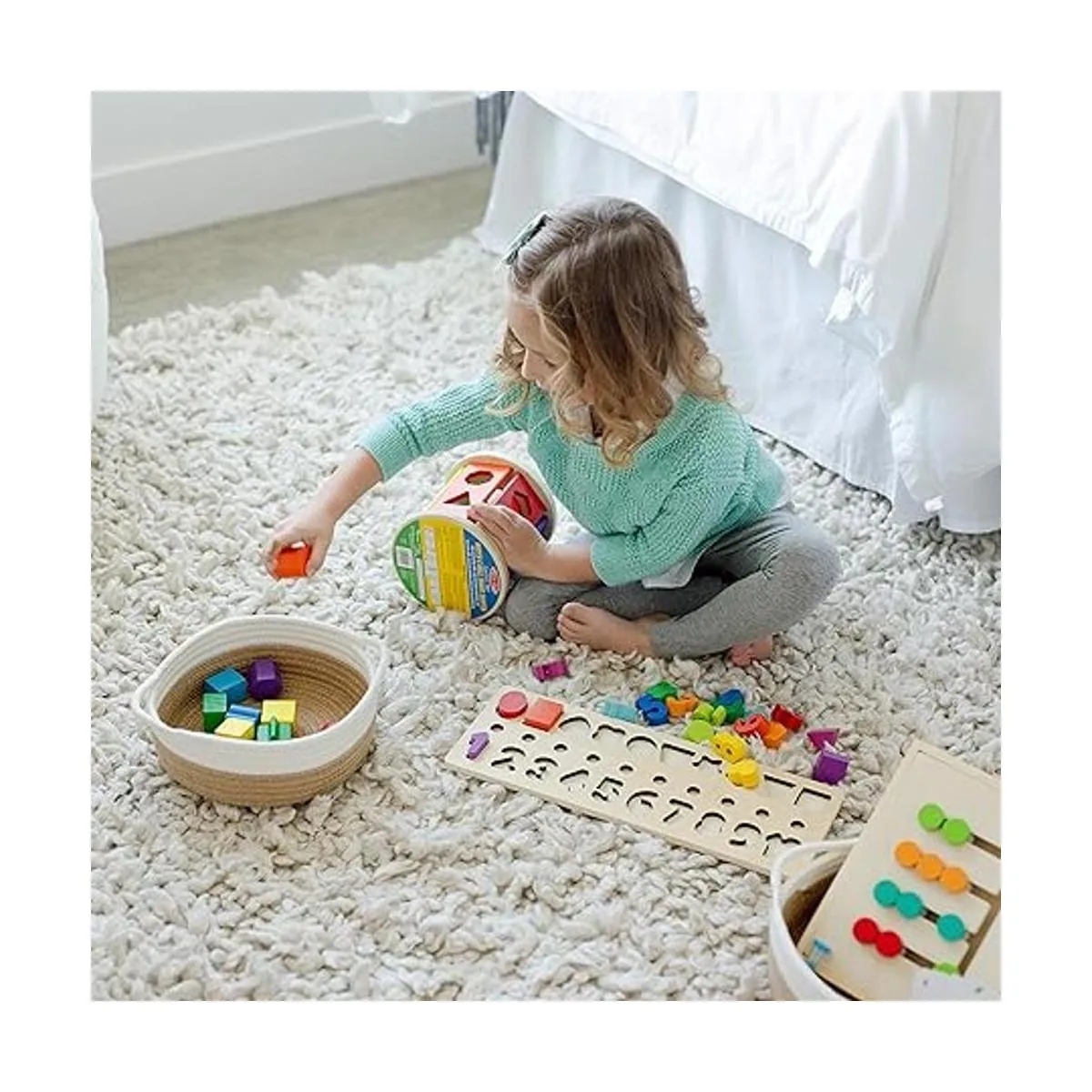 Diseño doble reforzado y sin arañazos: cuando eres una mamá o papá a tiempo completo, necesitas una solución de almacenamiento que funcione tan duro como tú. Con costuras reforzadas en las asas y la base, nuestro juego de cesta de almacenamiento está listo para hacer frente a algunas acciones de alta resistencia y mantendrá el juego más duro para niños pequeños. Con nuestros diseños de cesta de cuerda suave pero firme tejida a mano, nunca tendrás que preocuparte por arañazos o marcas que se queden en tu mesa de café, estante, mesa de puerta delantera, mesita de noche o cualquier mesa.