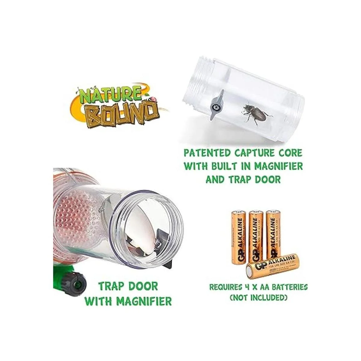 Nature Bound Aspirador de insectos con caja de hábitat iluminada para exploración de patio trasero, kit completo para niños que incluye aspiradora y jaula, verde