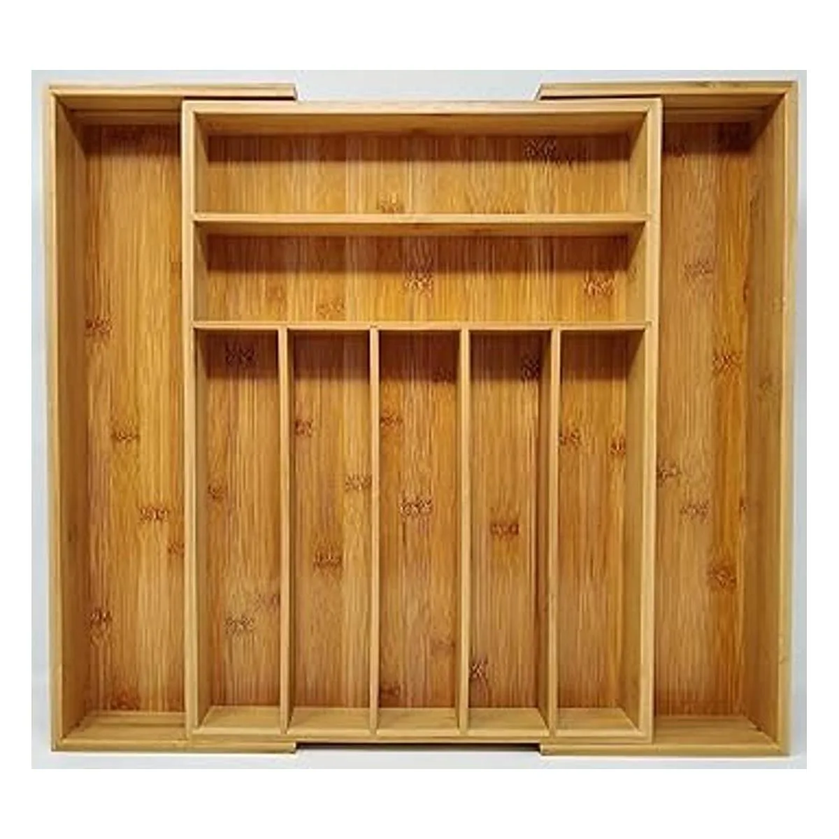 Nature Gear Organizador de cajones de cocina, almacenamiento de bambú expandible de 9 secciones para cubiertos, artículos para el hogar, baño y tocador, bandeja ajustable para herramientas