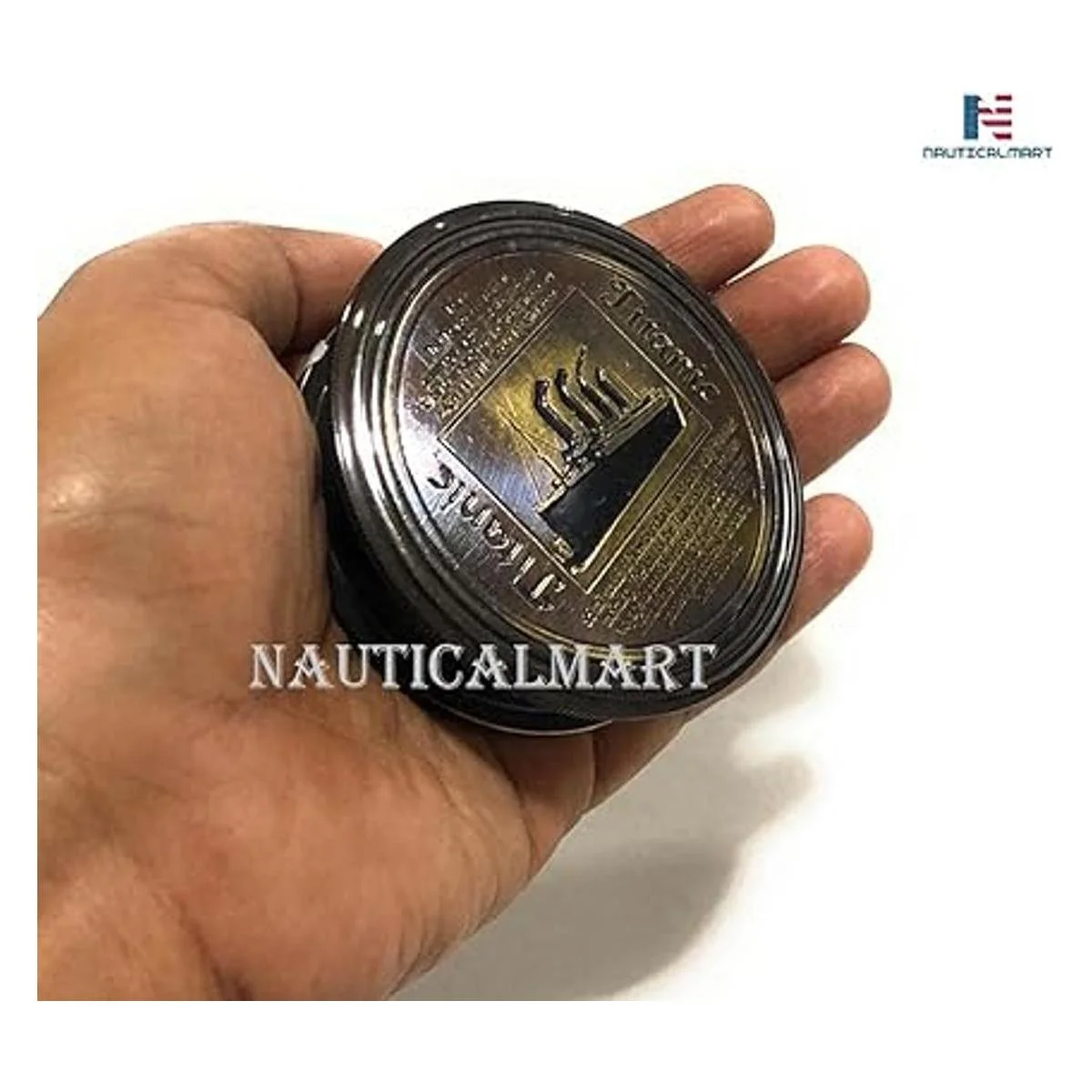 Gran brújula de bolsillo de titanio para decoración náutica.