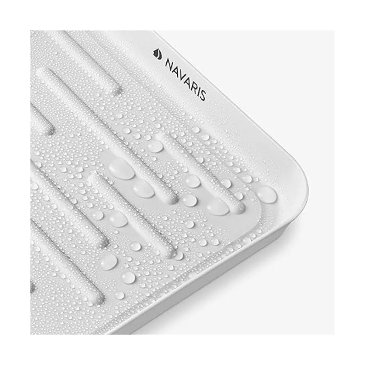 Borde elevado: cada bandeja cuenta con un borde elevado, que ayuda a contener cualquier desorden de la suciedad diaria, gotas de lluvia, cajas de arena para gatos, plantas en maceta y mucho más. La superficie de la alfombrilla permite que las suelas de los zapatos se sequen más rápido.