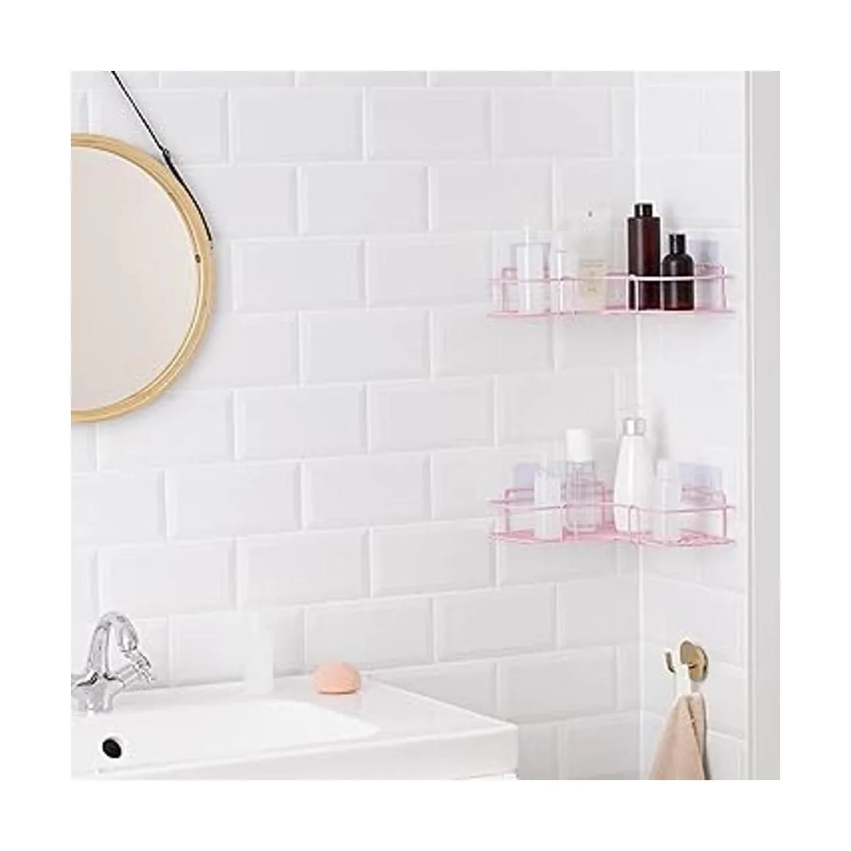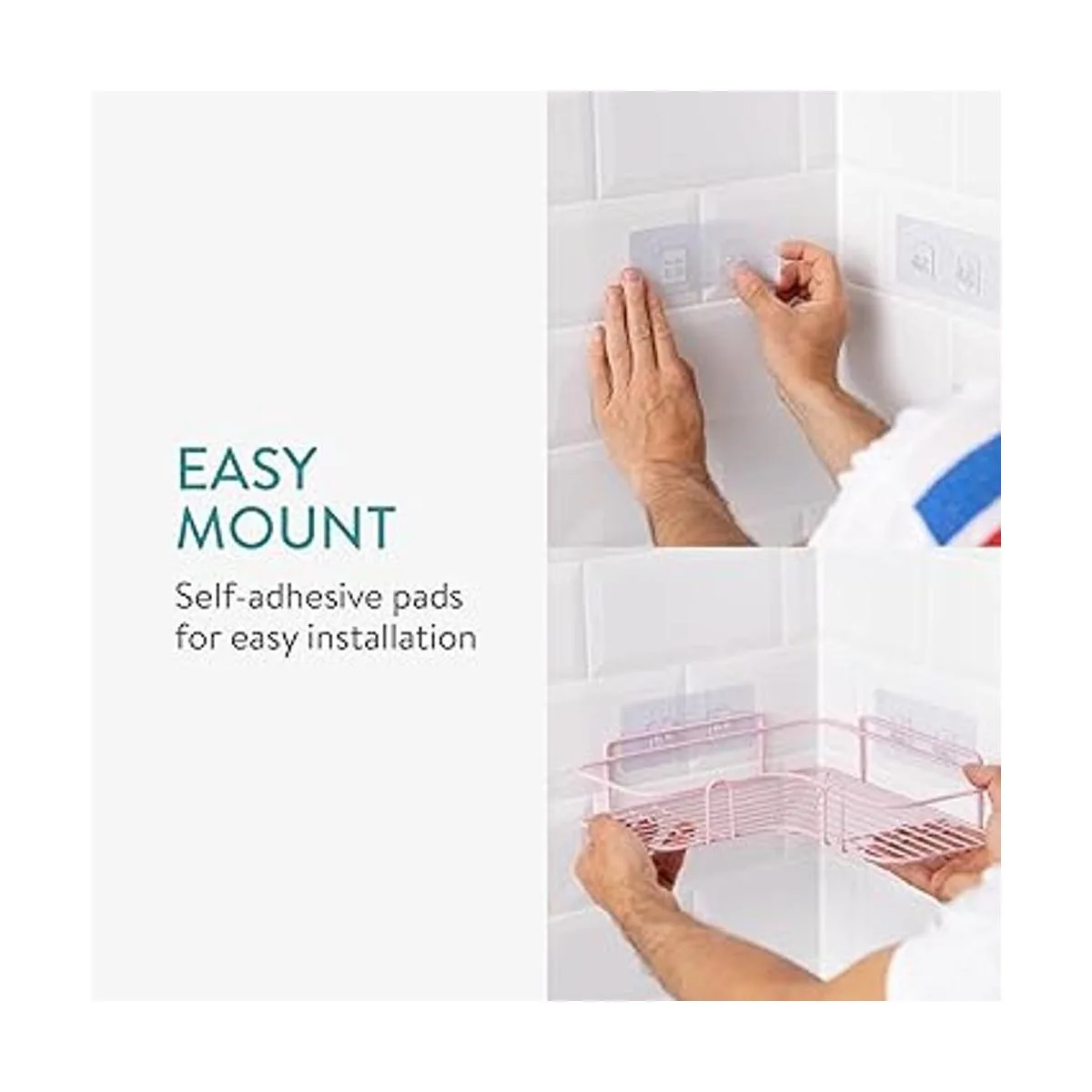 Sin taladrar: los estantes son autoadhesivos, por lo que no necesitas taladrar, atornillar o martillar nada en las paredes de tu baño. Selecciona la pared deseada para colocar y limpiar antes de la aplicación.