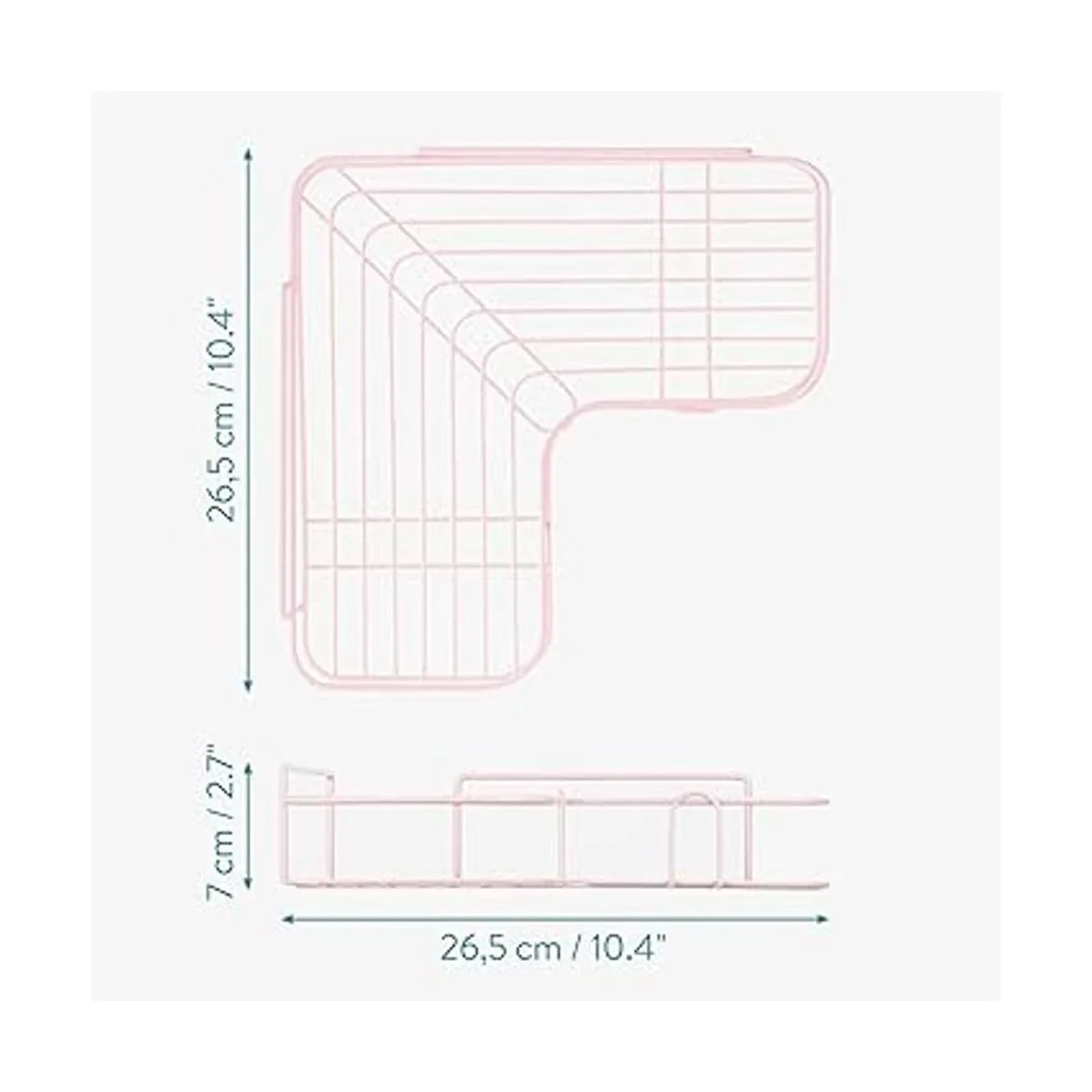 Especificaciones: en general, cada estante mide 10.4 x 10.4 x 2.8 in y está fabricado con hierro con un revestimiento inoxidable. Cada estante puede soportar hasta 6.6 lbs de peso. No requiere taladrar.