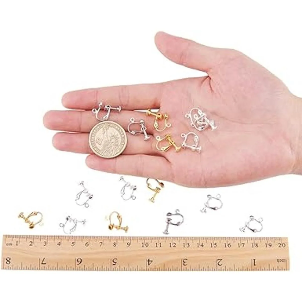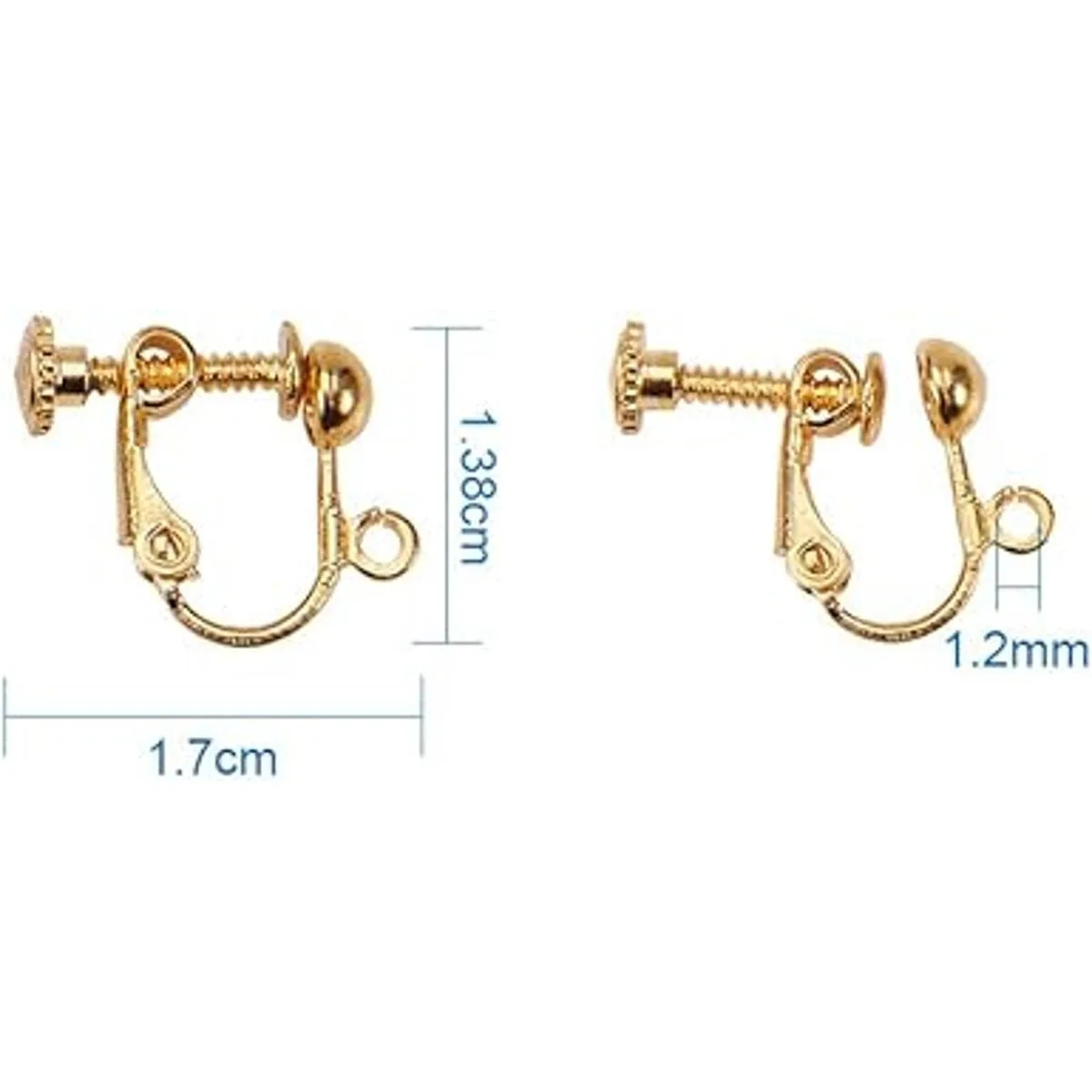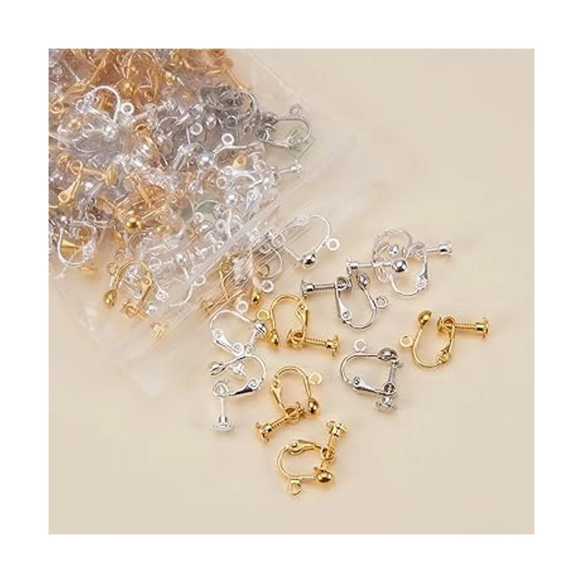 NBEADS 100 unidades de tornillo de ajuste de tornillo de latón convertidores de pendientes, de color mixto aleatorio con clip de ajuste de rosca y alambre abierto para joyería de pendientes no perforados.