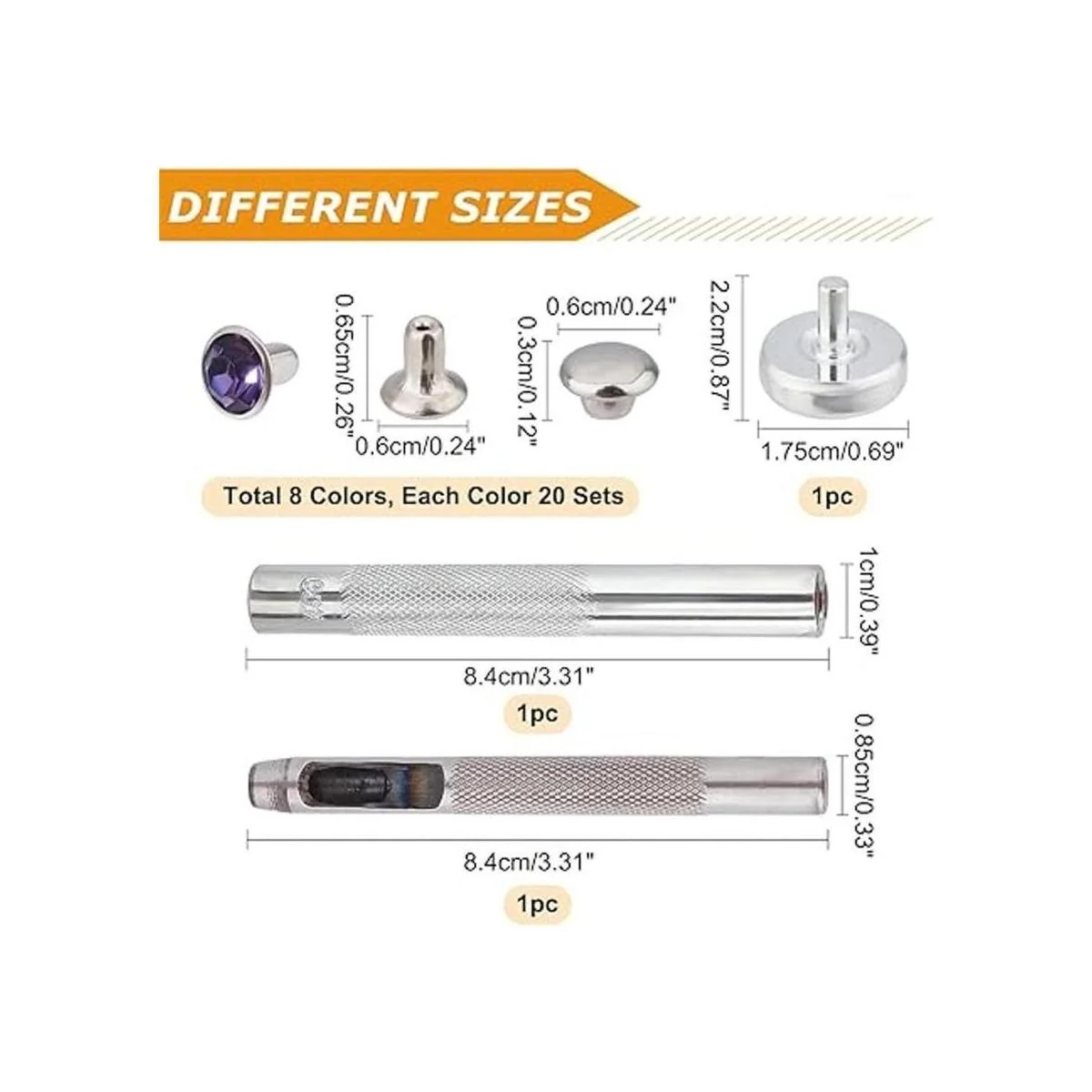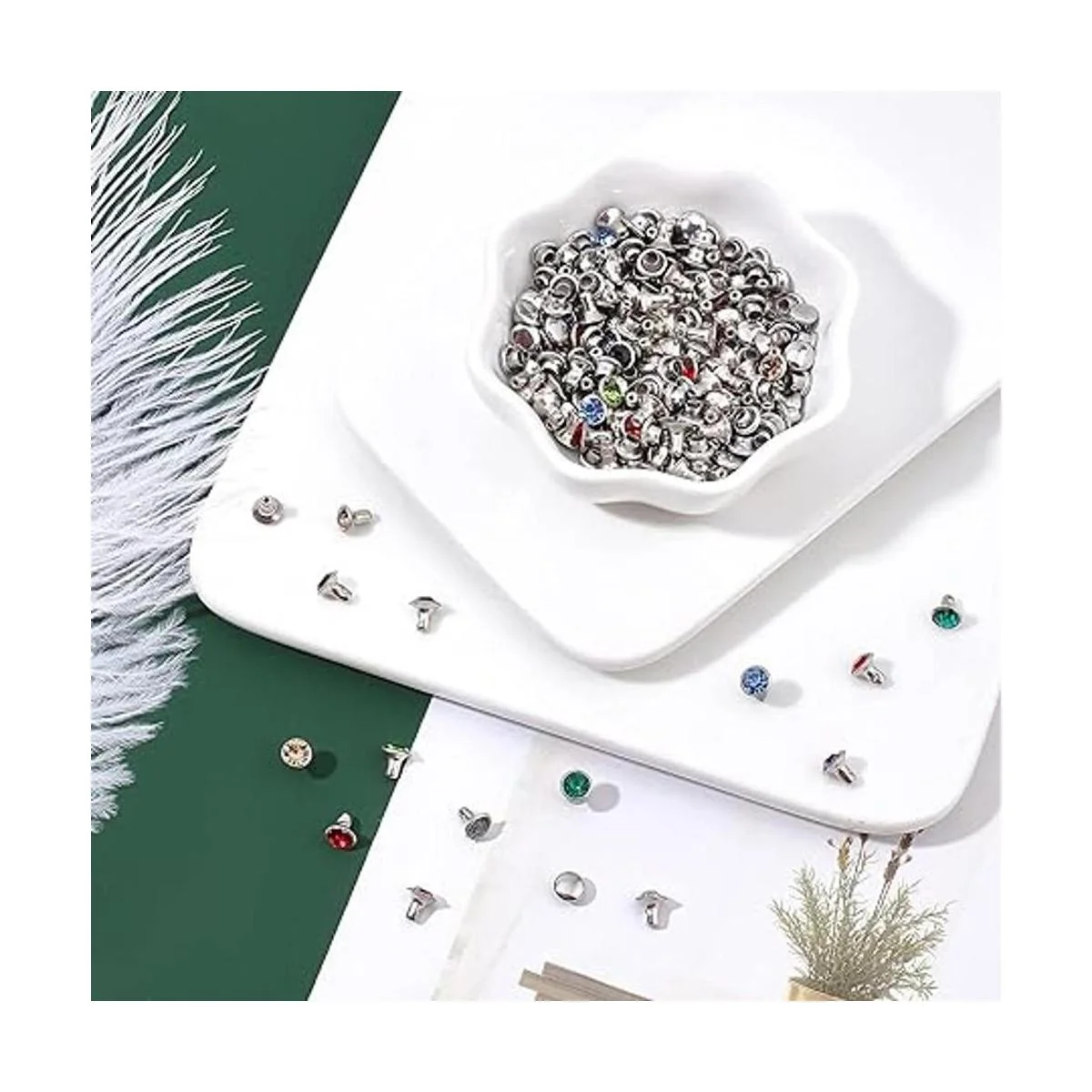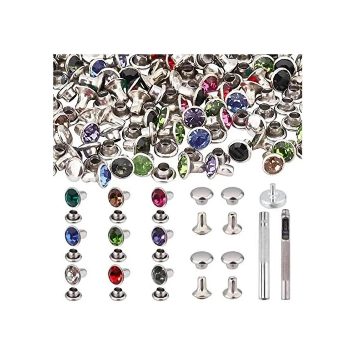 NBEADS 200 juegos de remaches de diamantes de imitación, remaches de cristal de latón con piezas Kit de herramientas de ajuste de colores remaches para manualidades de cuero DIY