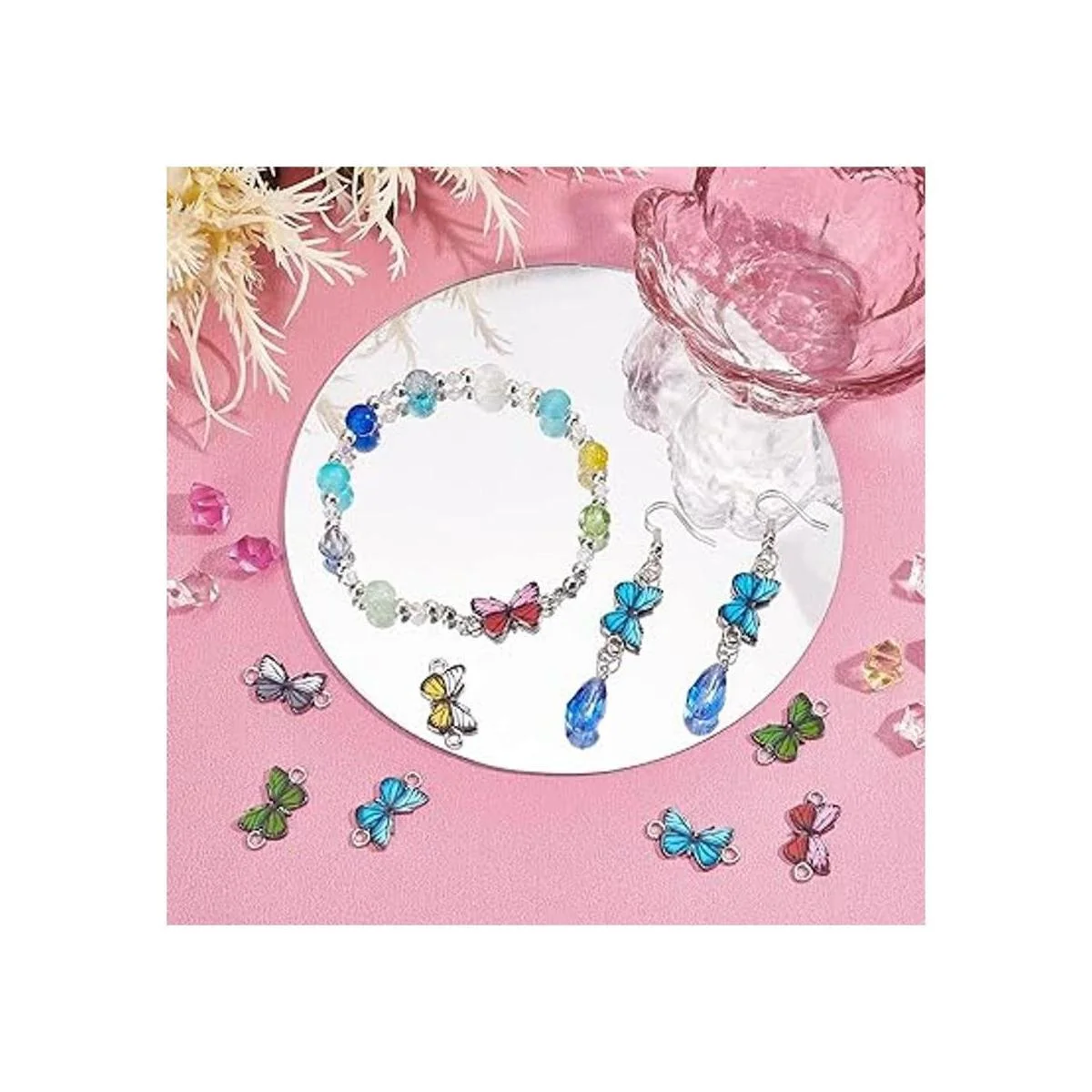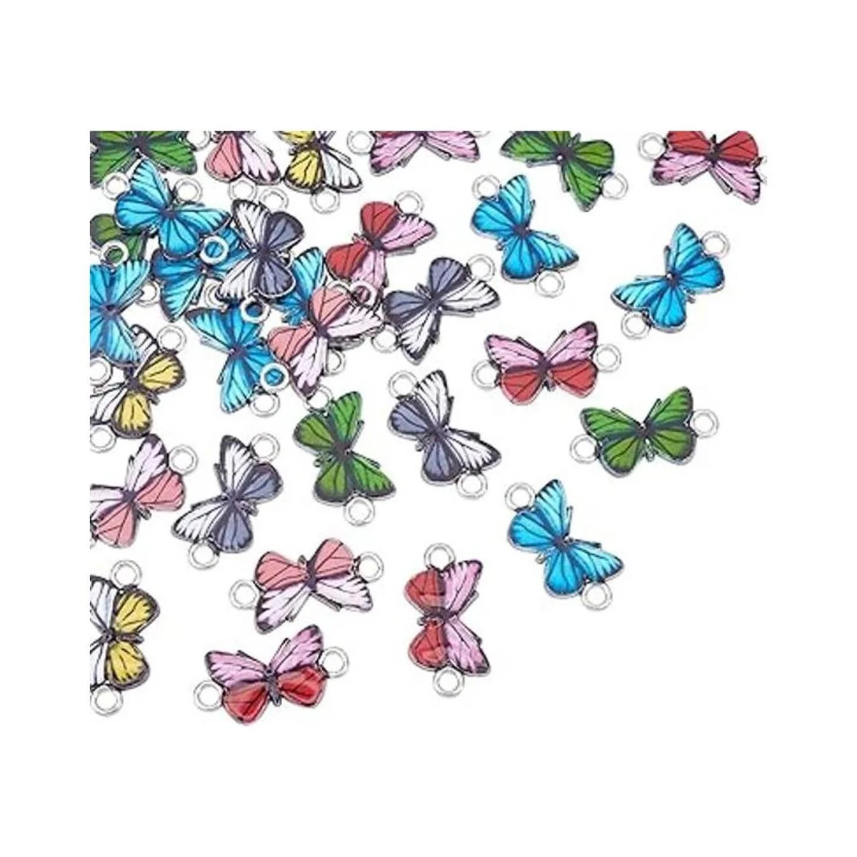 NBEADS 30 piezas de aleación de mariposa esmaltada, conector de mariposa al azar, colgante de metal para pendientes, pulseras, collar, fabricación de joyas, accesorios, Esmalte de aleación