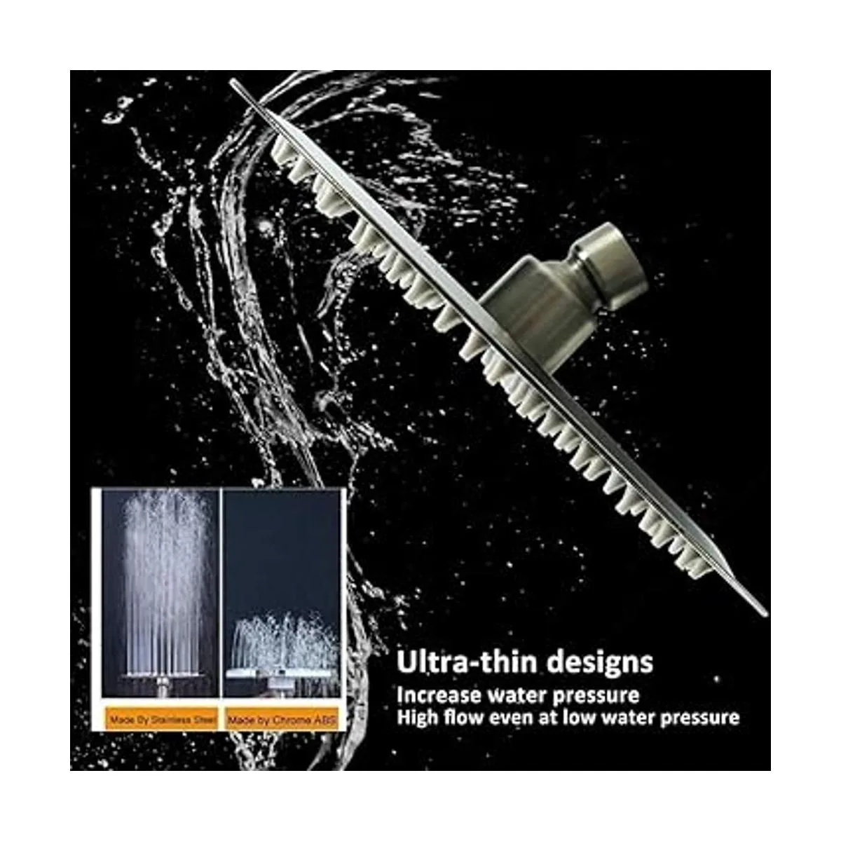 Elegante, delgado con flujo de agua de alta presión: el cabezal de ducha NearMoon es ultra delgado y elegante con 10 pulgadas. El grosor es de solo 0.08 pulgadas. La combinación de tecnología ultra delgada y de entrada de aire conduce a una presión fuerte y alta, optimizada para cualquier presión de agua. Tendrás la experiencia de lluvia como un masaje completo y dinámico a tu piel que nunca has tenido.