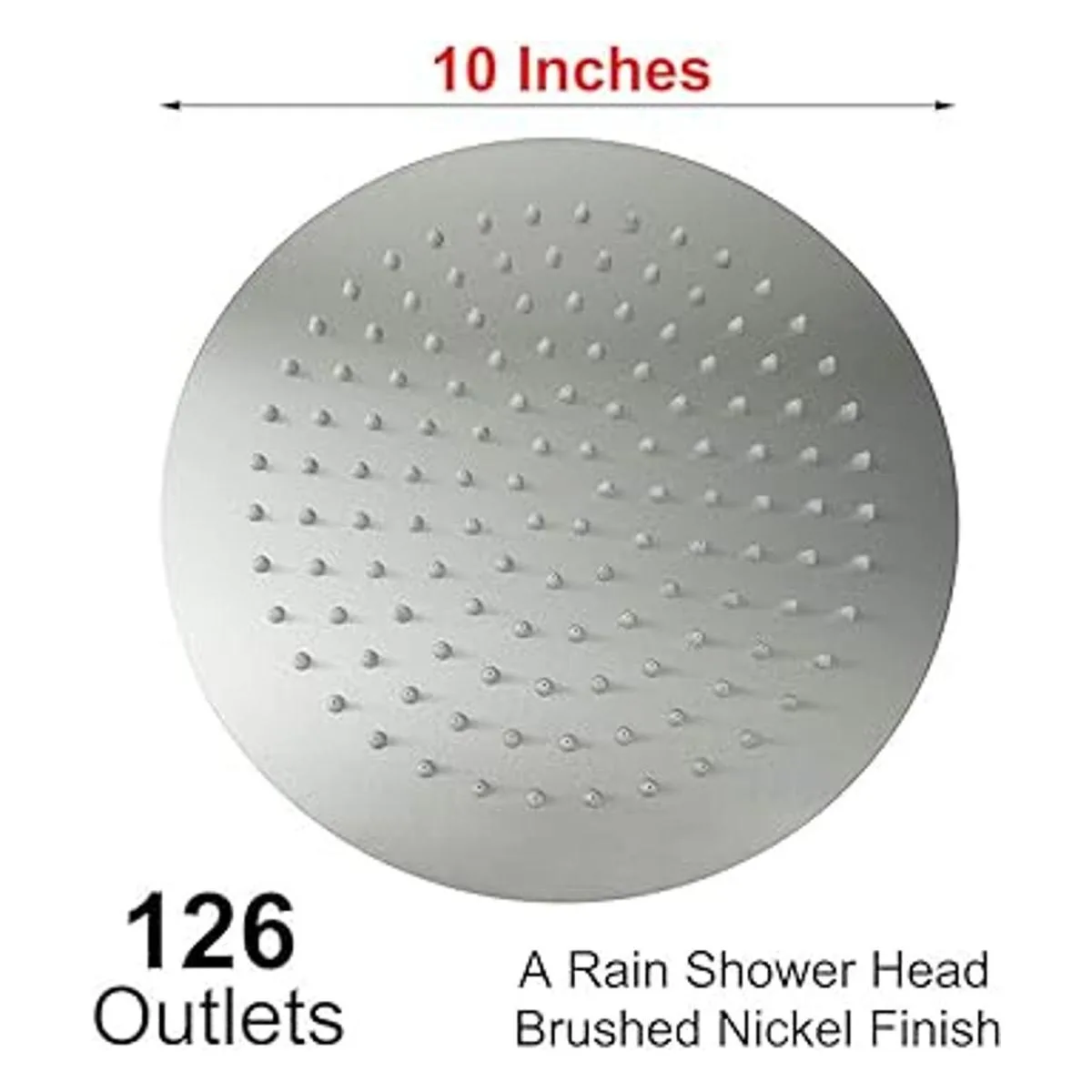 NearMoon Cabezal de ducha de lluvia, ducha grande de acero inoxidable de alto flujo, diseño ultrafino, cabezal de ducha, cubierta de cuerpo de cascada, montaje en techo o pared 10 pulgadas, níquel cepillado