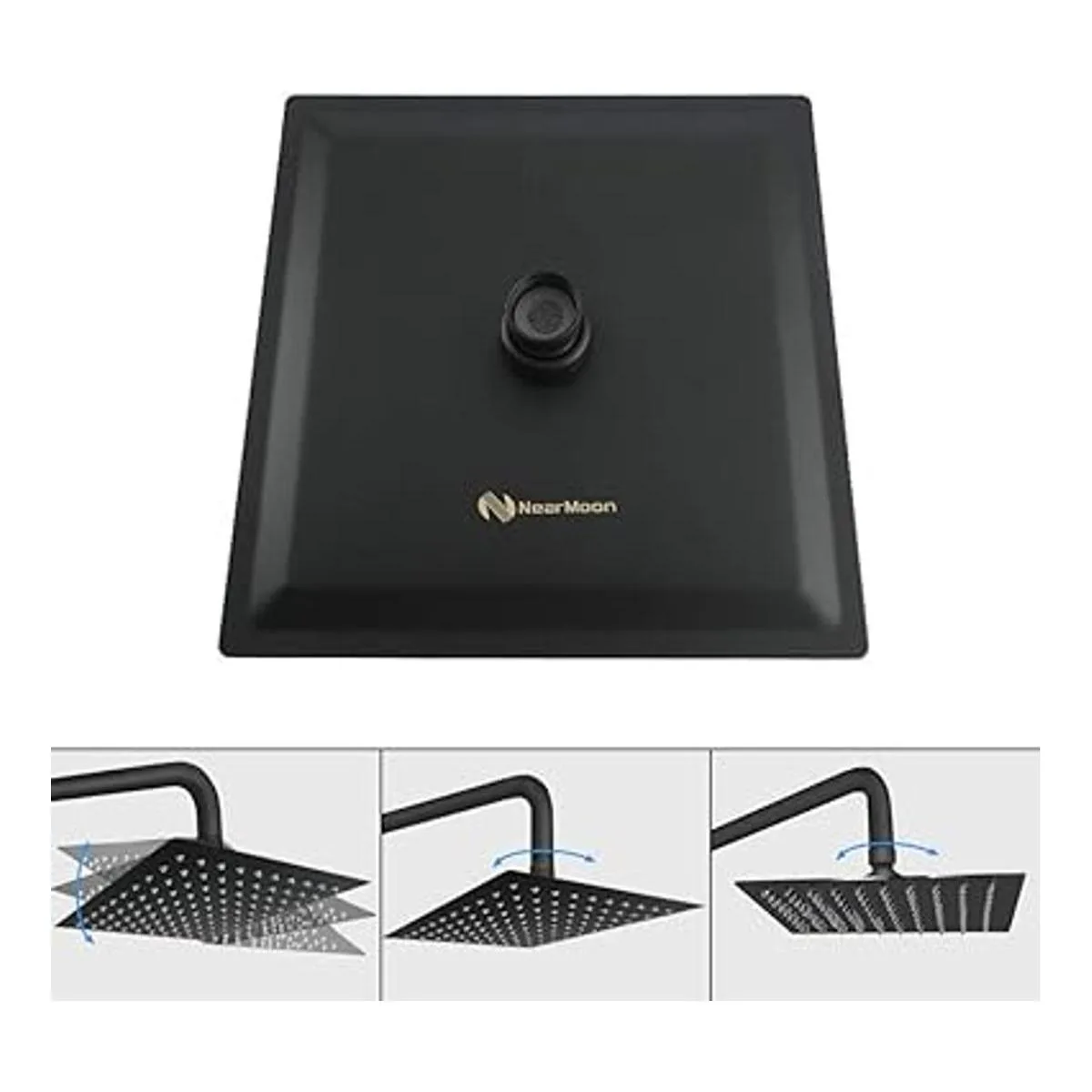 Nearmoon Cabezal de regadera de lluvia de alta presión, diseño cuadrado, acero inoxidable, que potencia la presión máxima, experiencia de baño con re impresionante incluso con bajo flujo de agua 8 pulgadas, bronce aceitado, negro