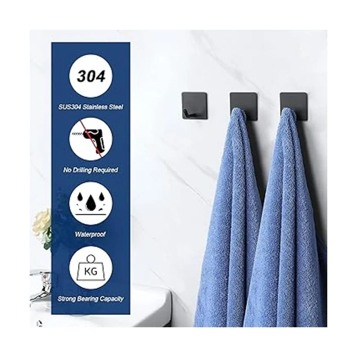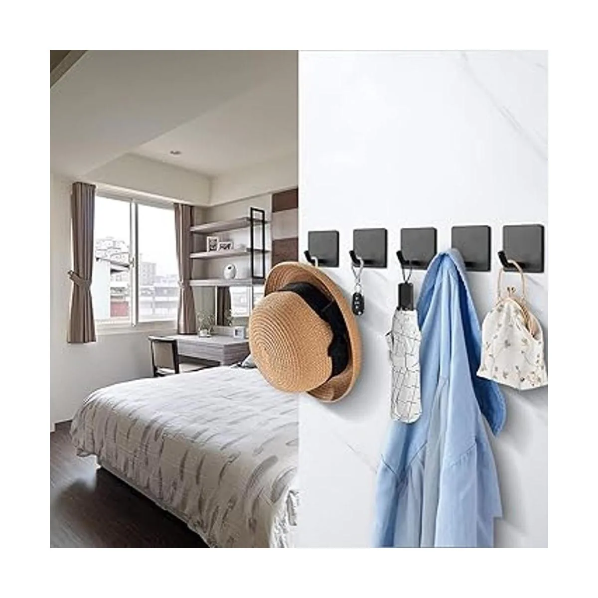 NearMoon Ganchos adhesivos, ganchos de pared de baño, impermeables, de acero inoxidable, para colgar toallas en la pared, soportes para ropa de baño, cocina, hogar, paquete de 5 negro mate