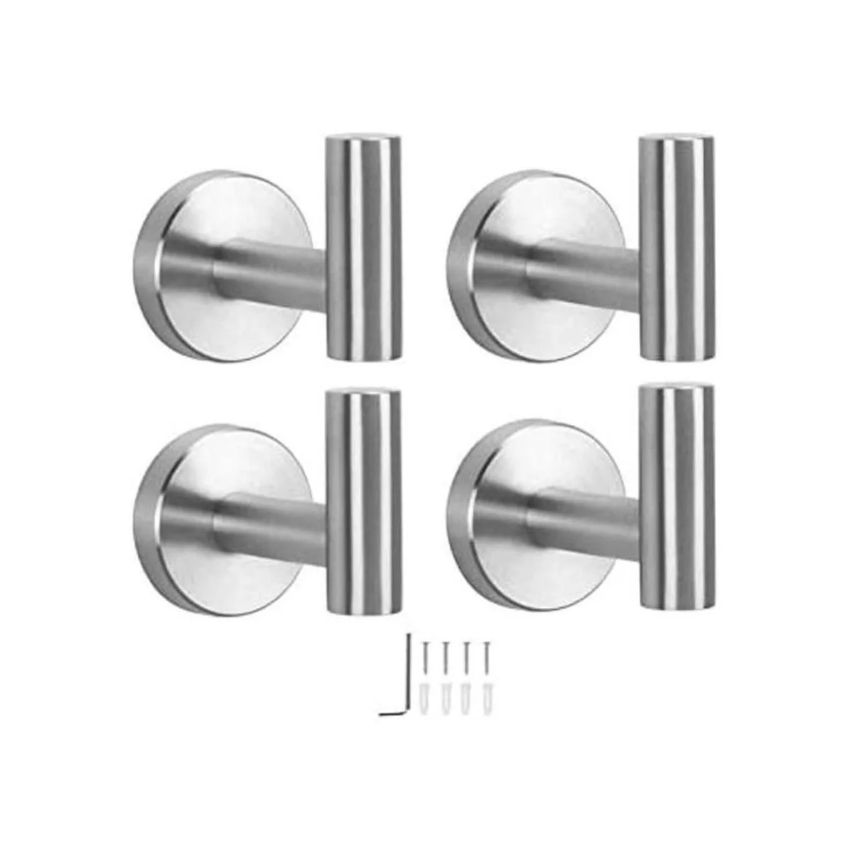 NearMoon Ganchos para toallas de baño, soporte de gancho de acero inoxidable SUS 304, gancho de abrigo resistente para baño, sala de estar, hotel, cocina, garaje, montaje en pared, paquete de 4 níquel cepillado