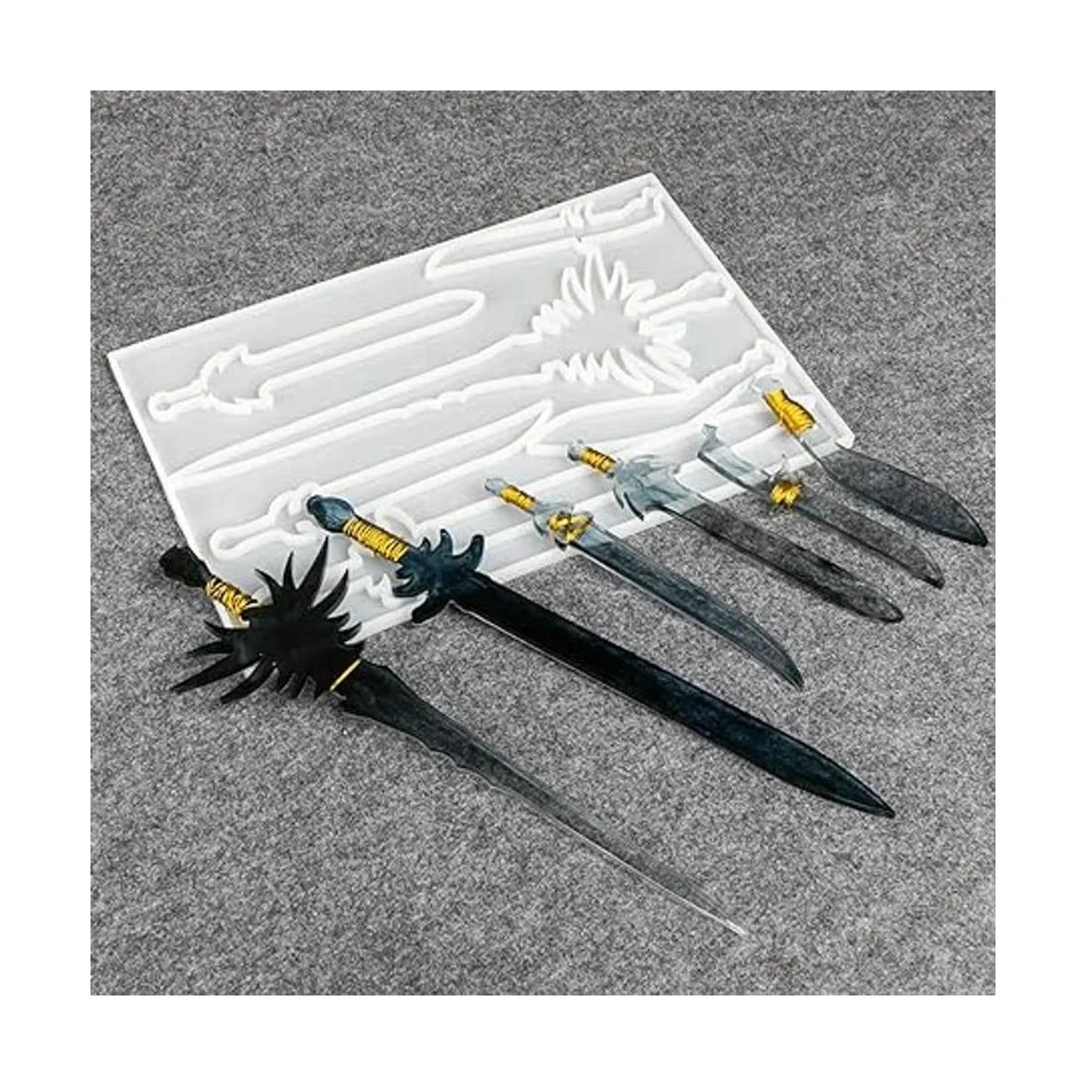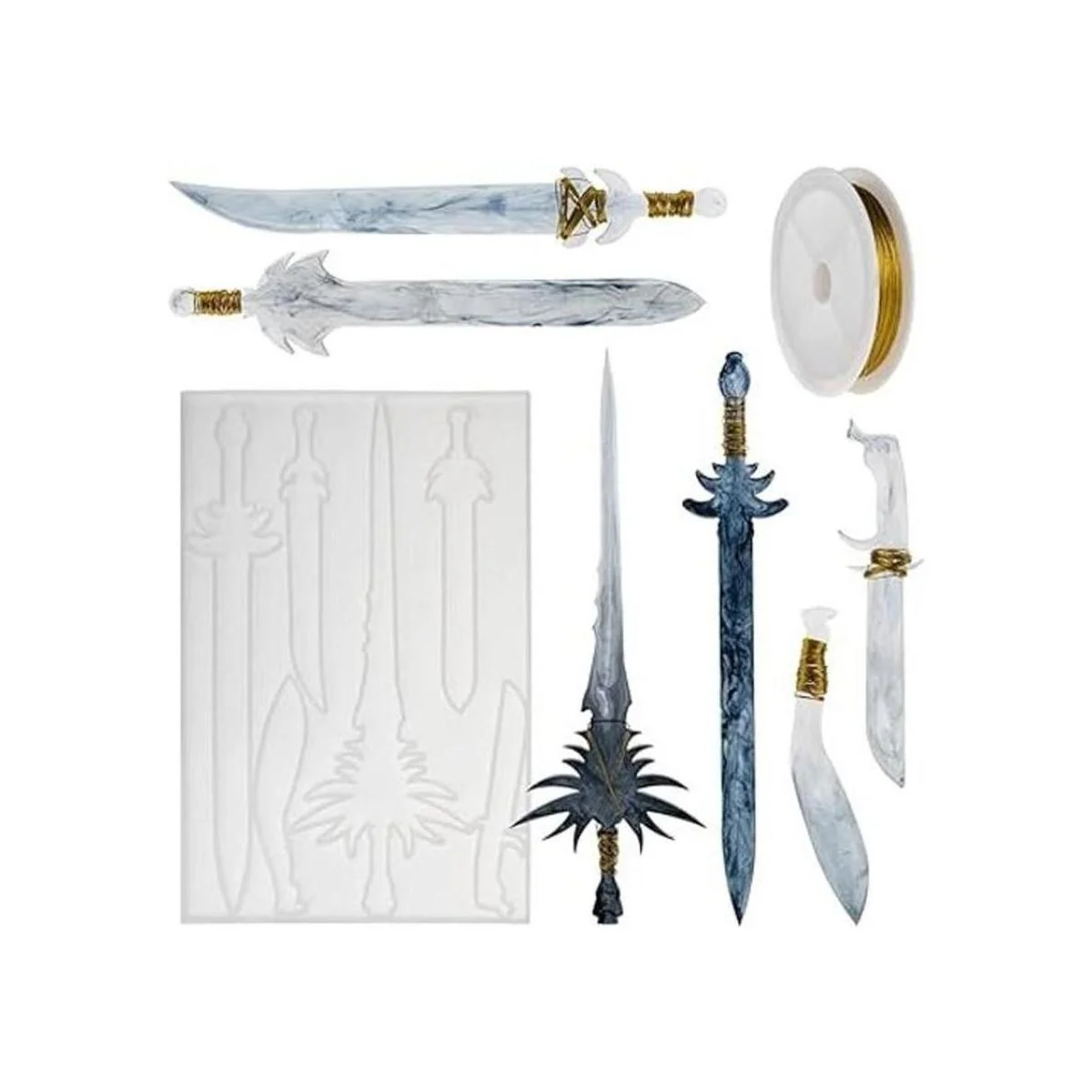 Nearockle Moldes de resina con alambre dorado para manualidades, moldes de silicona para fundición de resina epoxi Atham, con 6 moldes de resina de diferentes formas, llavero reutilizable, decoración, cosplay, moldes de epoxi de juguete