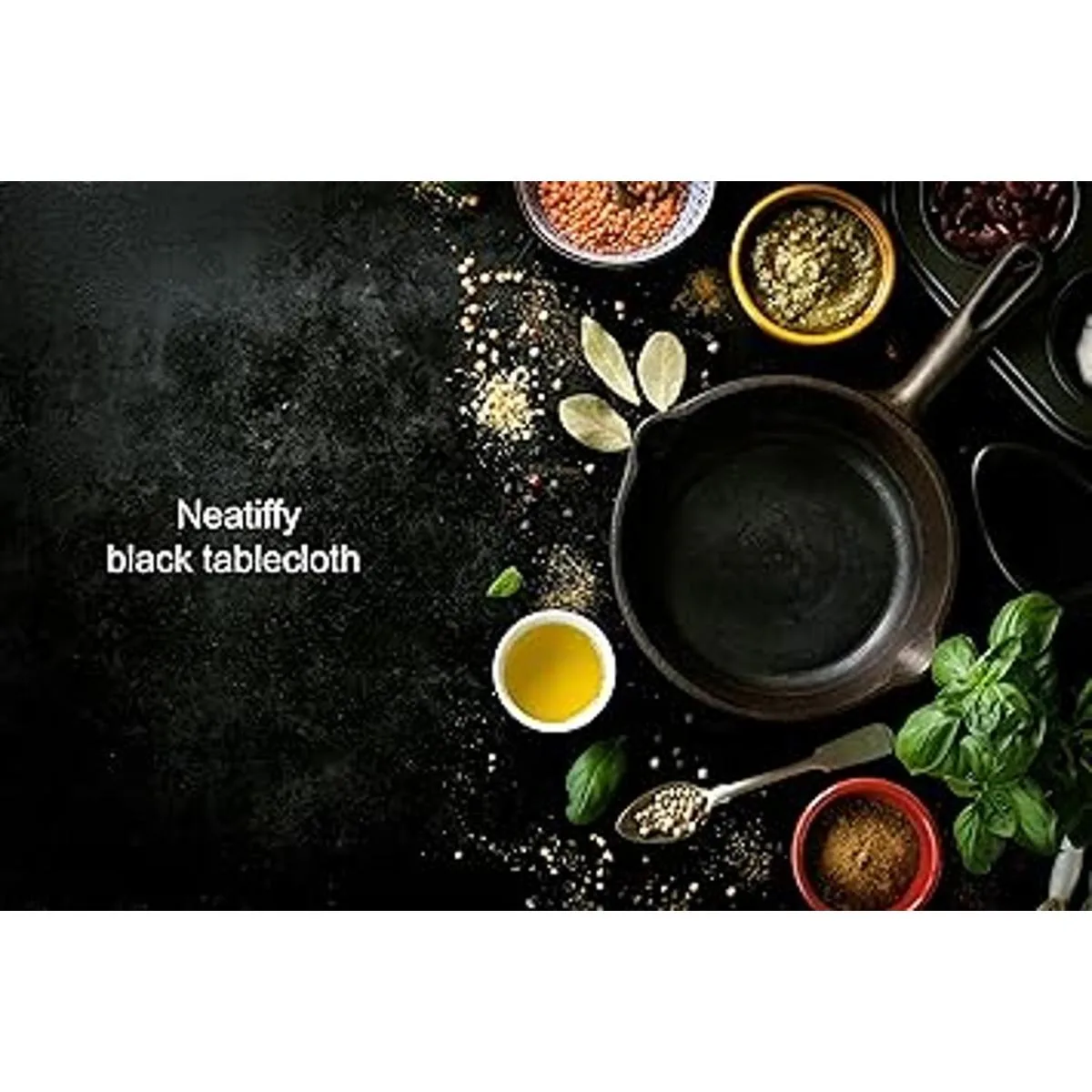 Multiusos: una opción ideal para bufé de alimentos, fiestas de aniversario, cenas de Acción de Gracias, celebraciones de Navidad, barbacoa y cualquier otra ocasión festiva, estos manteles negros son perfectos para mesas de arte y manualidades de niños o como paños de plástico para pintar.