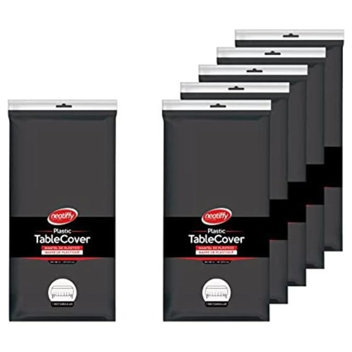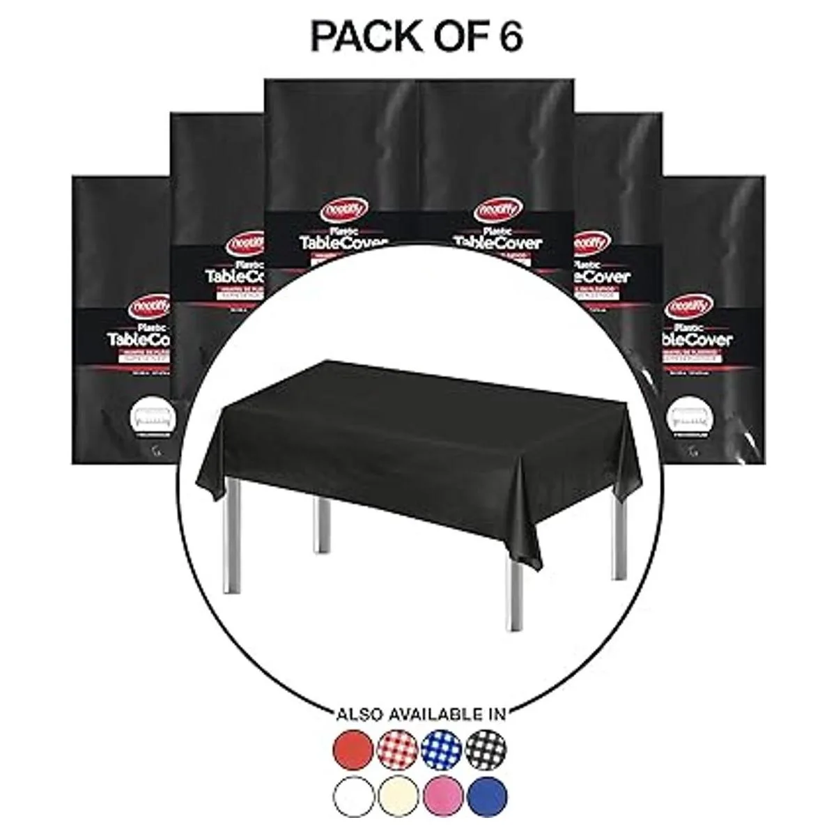 Neatiffy Mantel rectangular de plástico de 54 x 108 pulgadas, paquete de 6 manteles de picnic, campamento, fiesta, banquete, manteles desechables y reutilizables negro, 6