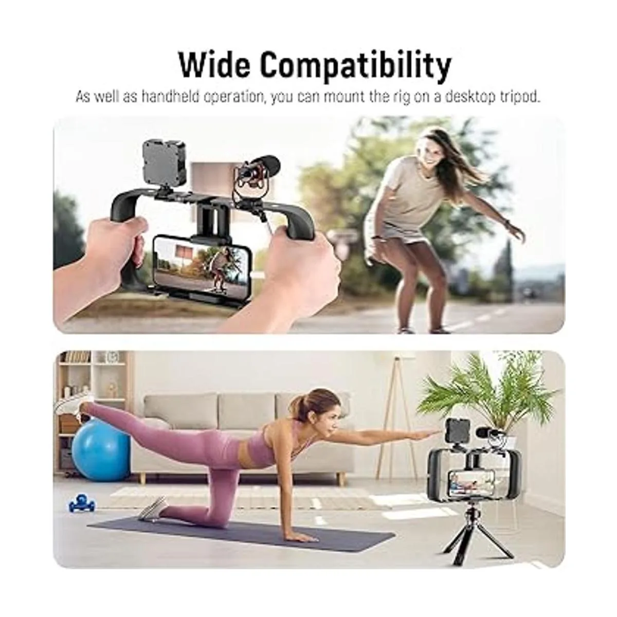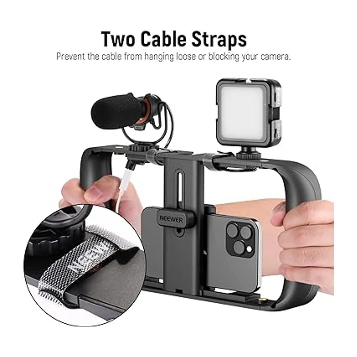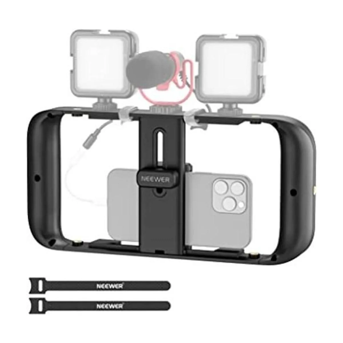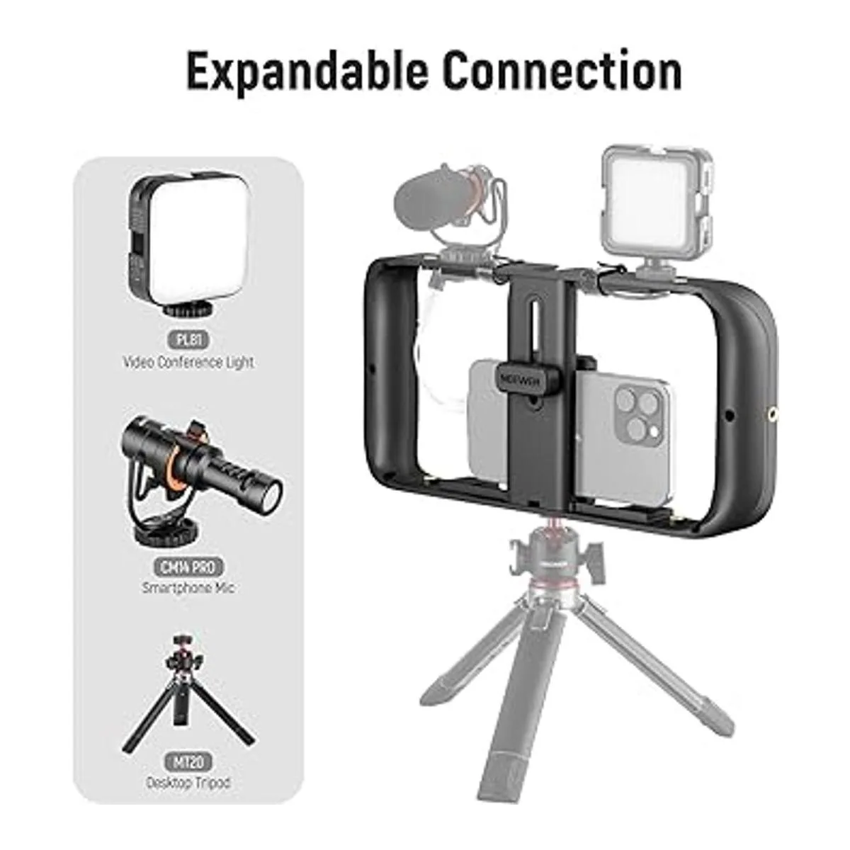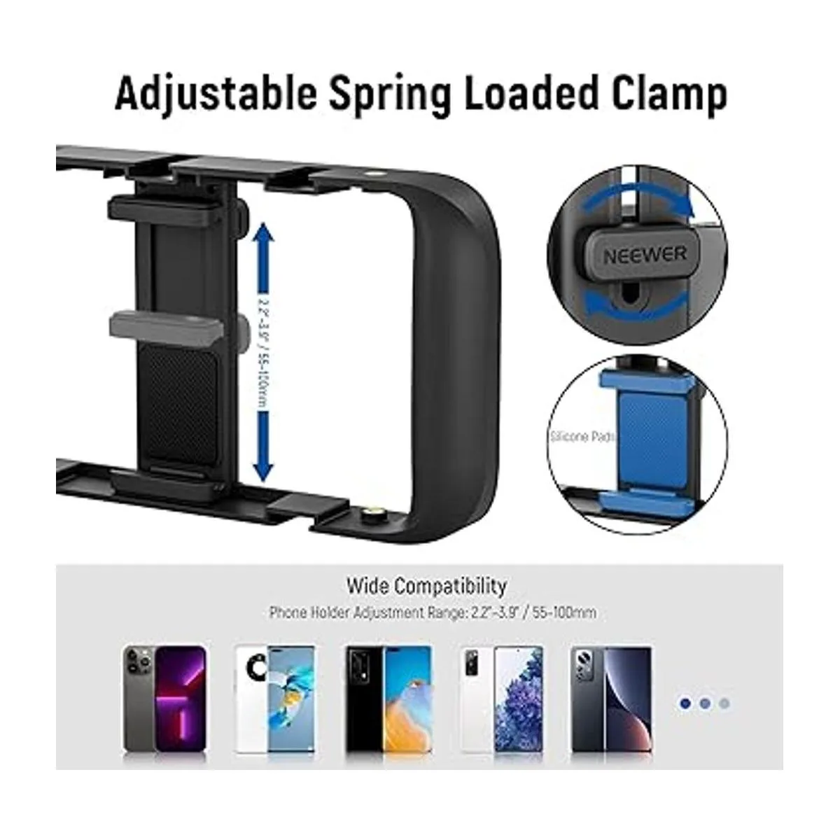 NEEWER Aparejo de video para teléfono inteligente, estabilizador de agarre de teléfono, jaula de vlogging con zapato frío y rosca de 14 pulgadas, plataforma de grabación de video compatible con iPhone 14 PlusPro Max 13 MiniPro Max X XS Max XR Android
