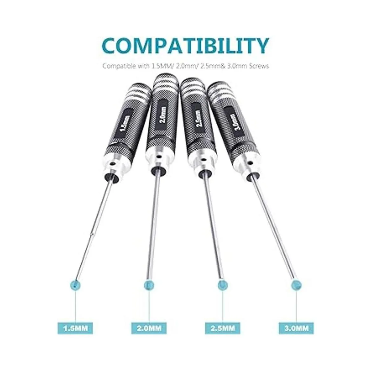 Neewer Juego de llaves hexagonales para destornillador de titanio ligero 4 piezas, para helicóptero RC 0.059 in0.079 in0.098 in0.118 in