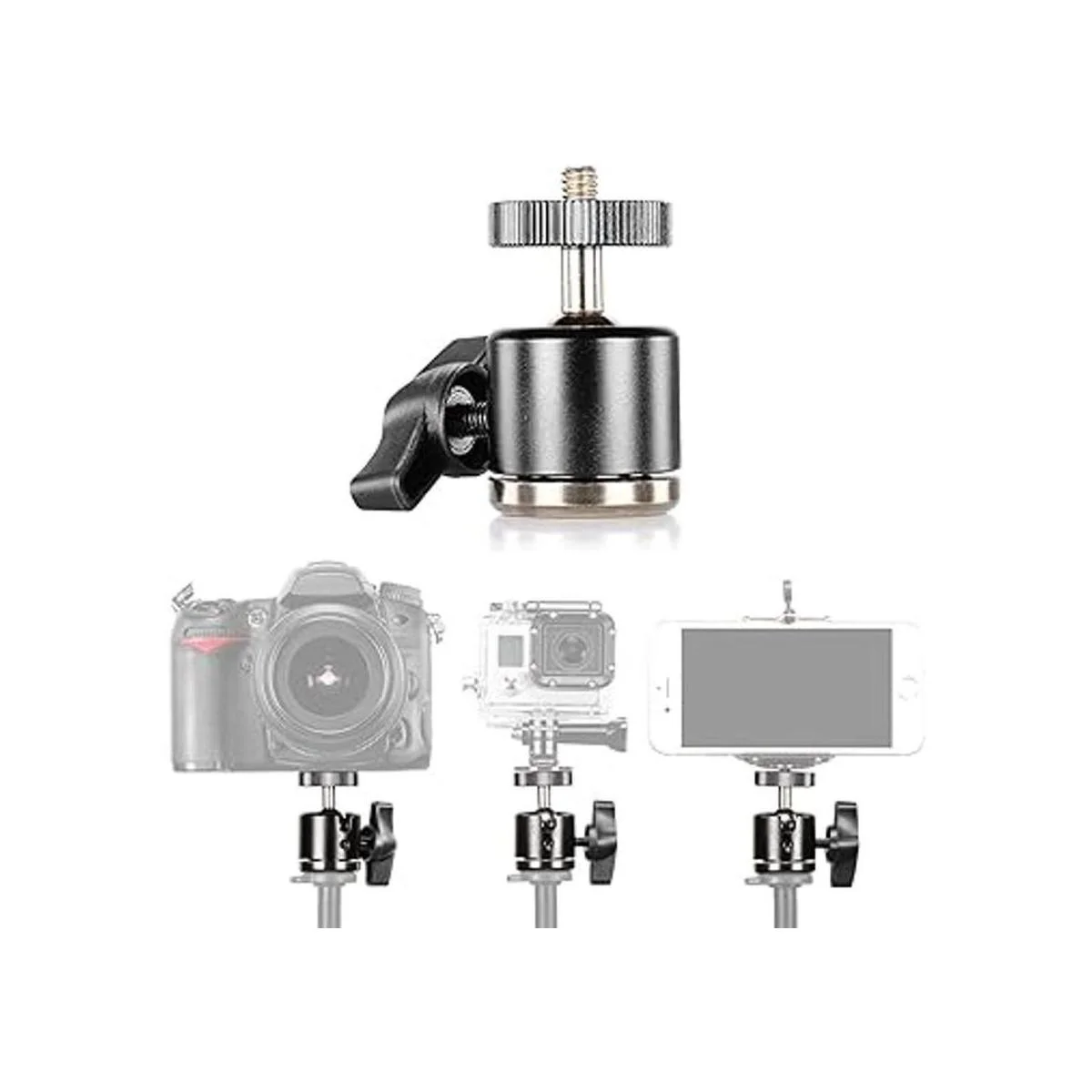 Neewer Mini cabeza giratoria de aleación de aluminio de 360 grados con base de rosca de 14 pulgadas y 38 pulgadas para cámara DSLR como Canon, Nikon, SonyVideocámaraiPhone 6s65S54S4, Gopro HD Hero 12334