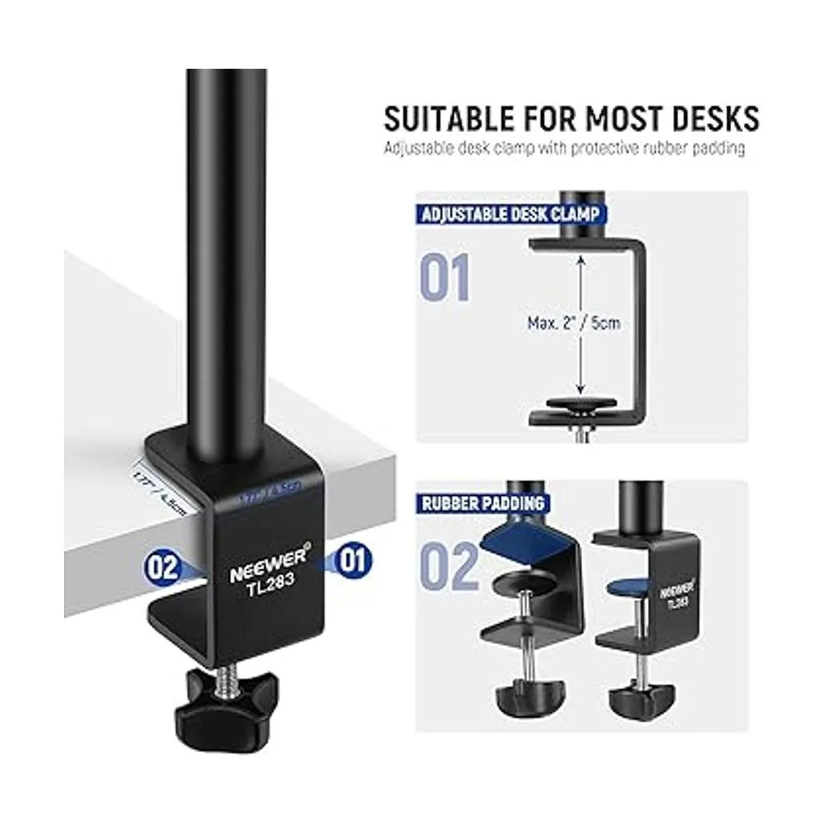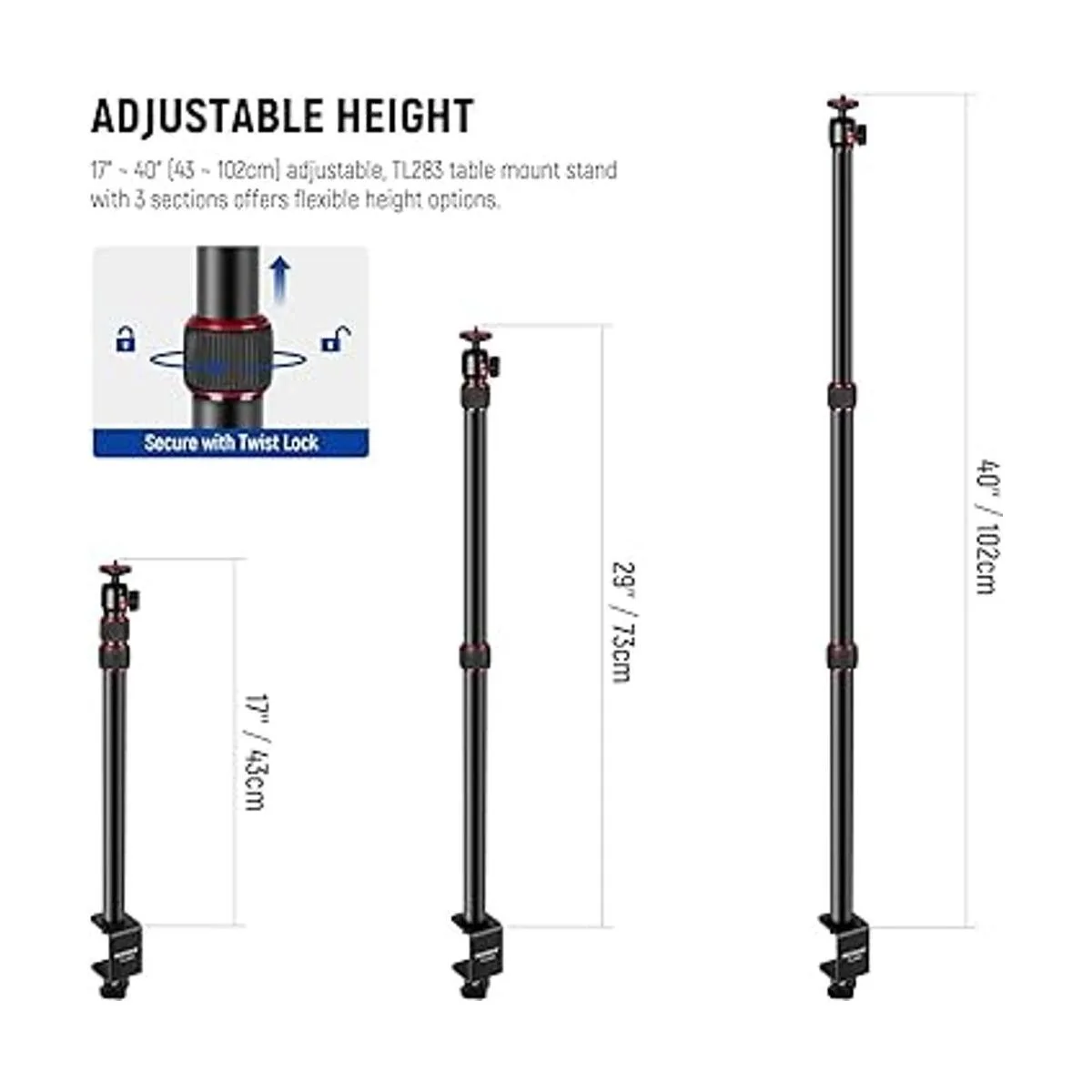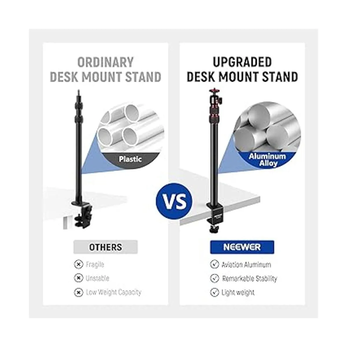 NEEWER Soporte de escritorio extensible para cámara con cabeza de bola de 14 pulgadas, soporte de luz de mesa ajustable de 17 a 40 pulgadas con adaptador de tornillo de 14 pulgadas y abrazadera en C para cámara DSLR, luz de anillo, transmisión en vivo, vlog, carga máxima 6.6 lb3 kg