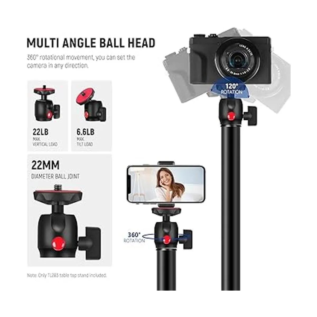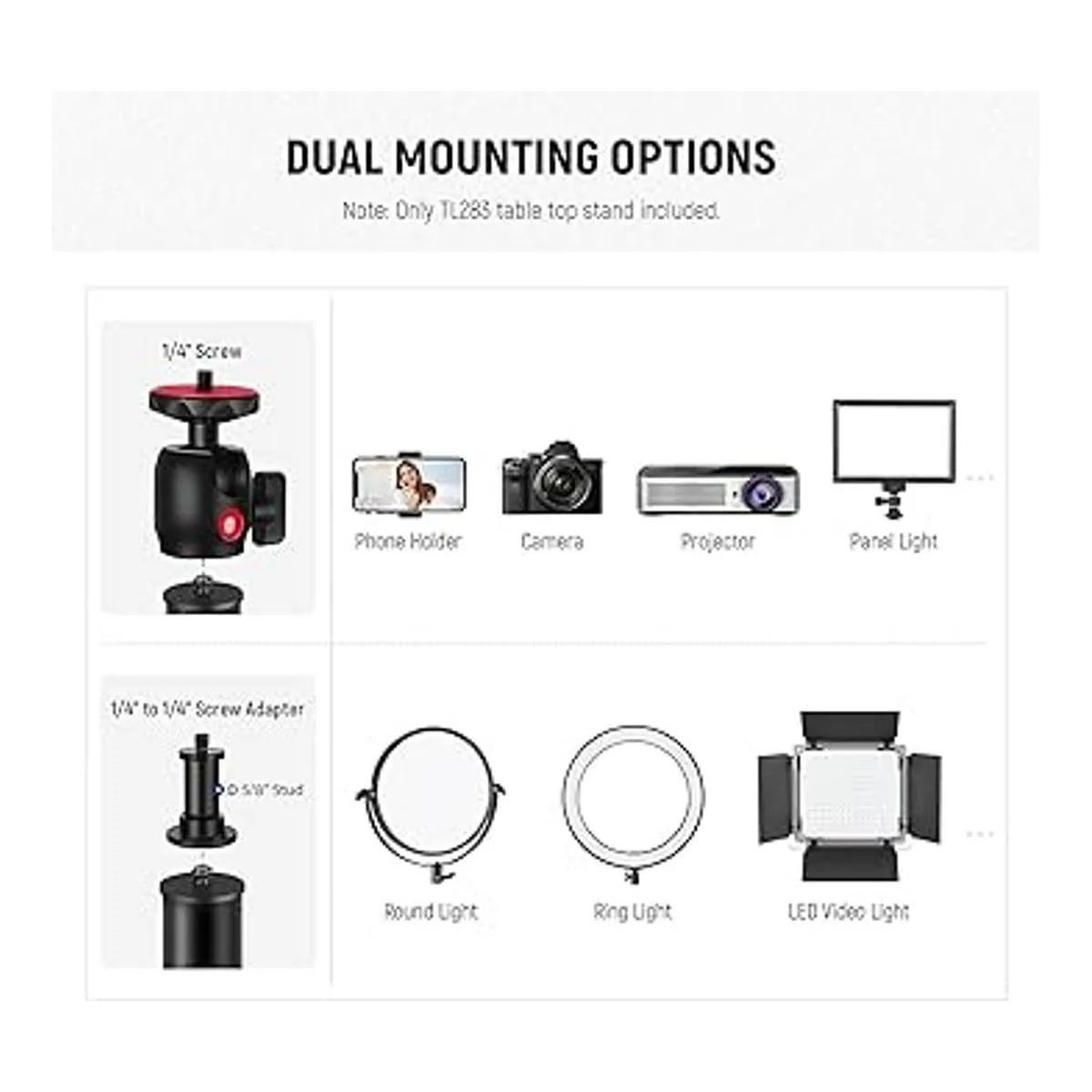 Amplia aplicación: monta tu cámara DSLR, cámara sin espejo, cámara web, luz de anillo y luz de video LED para fotografía de productos, fotografía macro, fotografía superior, videoconferencia, transmisión en vivo, enseñanza en línea y vlogging. El peso neto de 23.99 oz hace que sea fácil de transportar