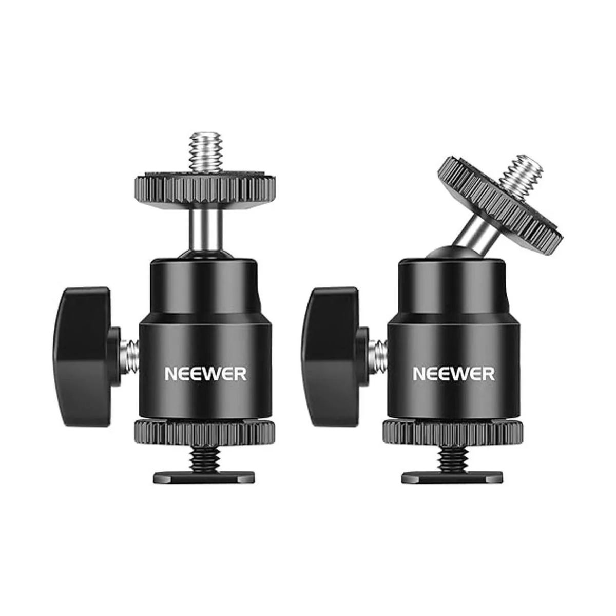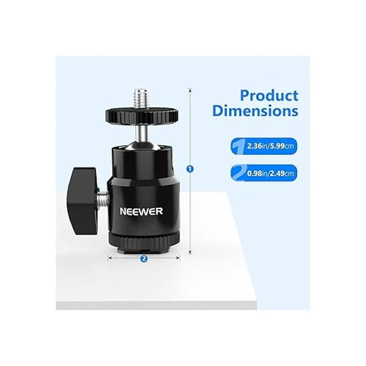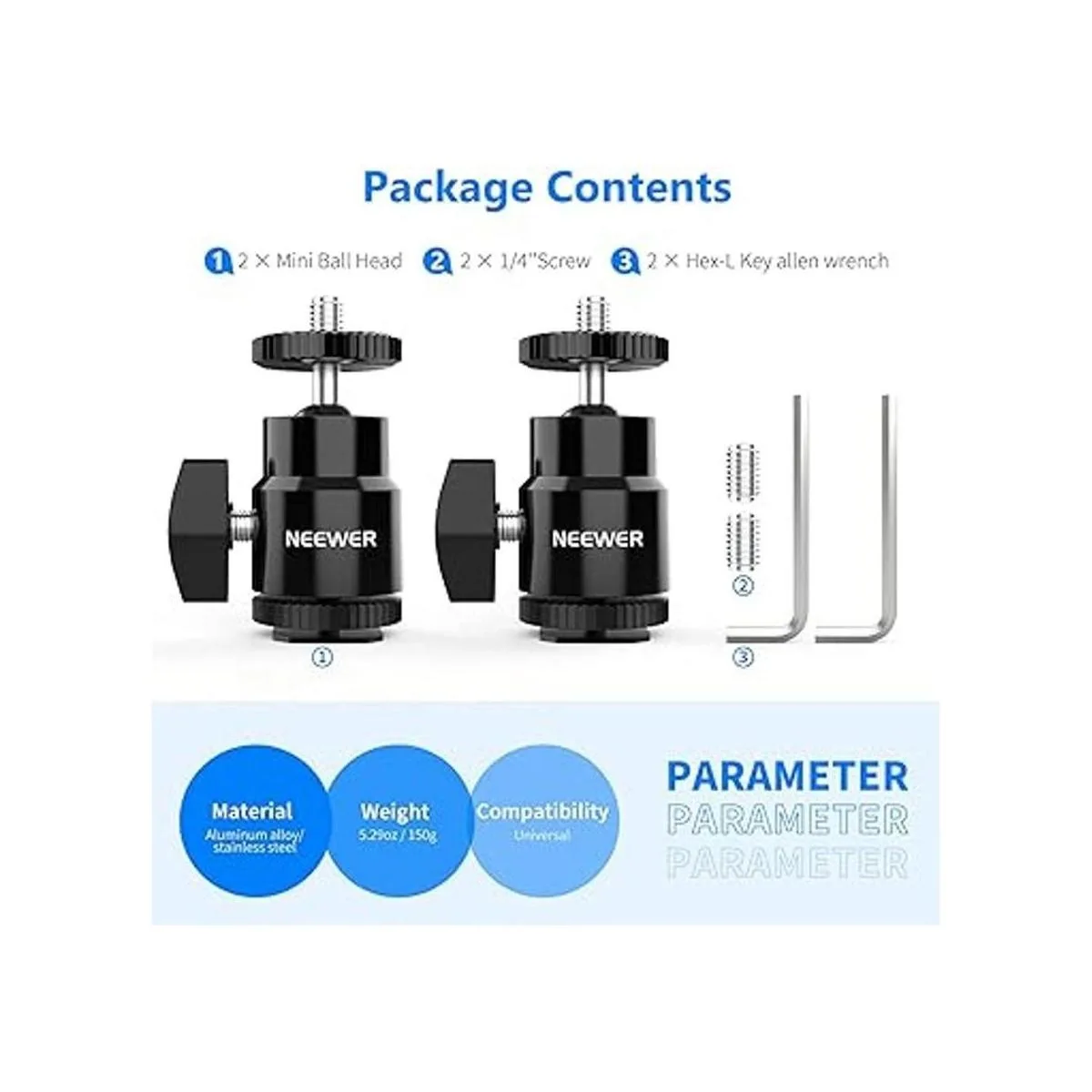 Contenido del paquete: paquete de 2 mini cabezales de bola Neewer, dos llaves hexagonales, dos tornillos de 1/4 pulgadas
