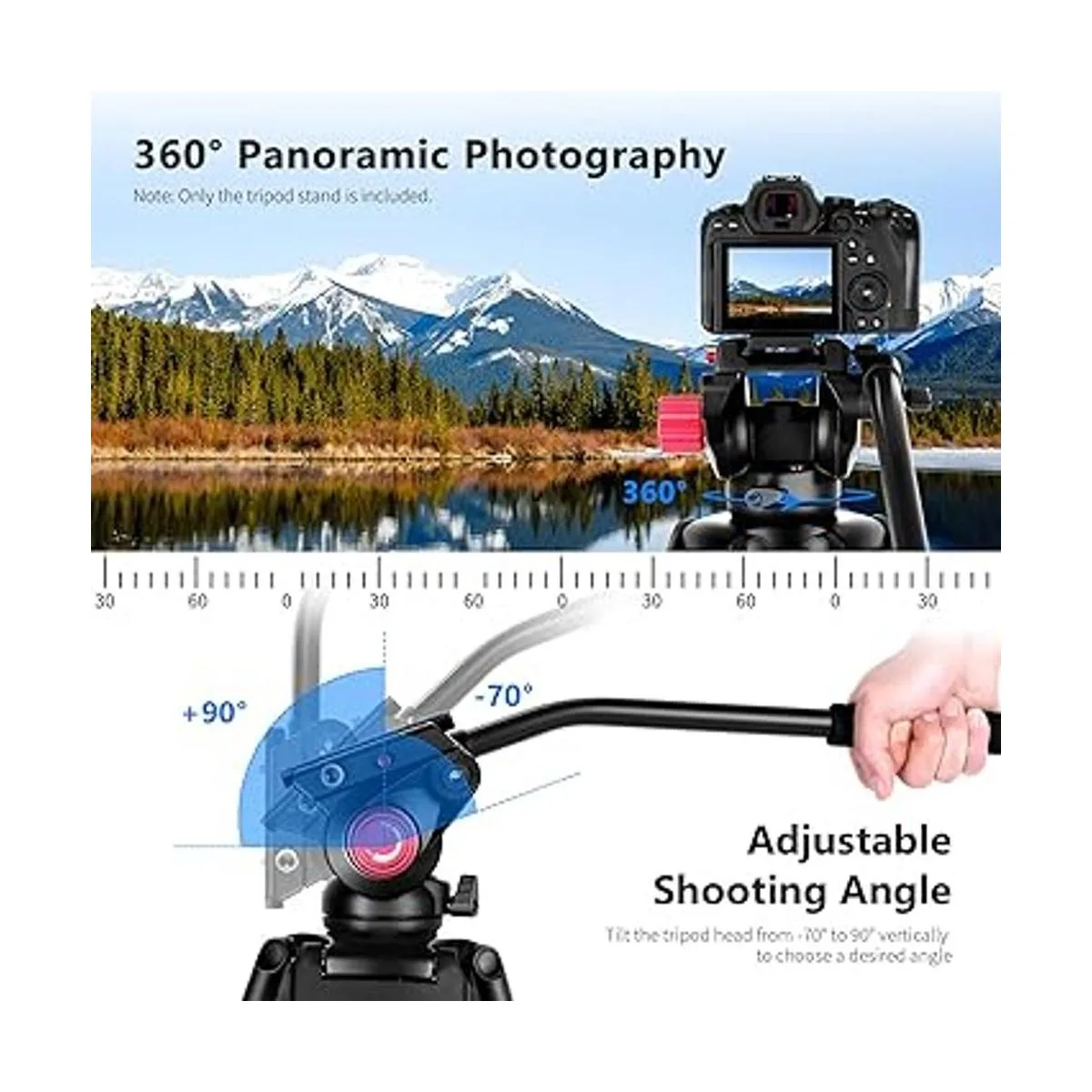Cabezal de caída fluida: el cabezal fluido se desliza 360 horizontalmente e inclina 70 a 90 verticalmente, lo que te da un ángulo de disparo perfecto y una experiencia de disparo mejorada