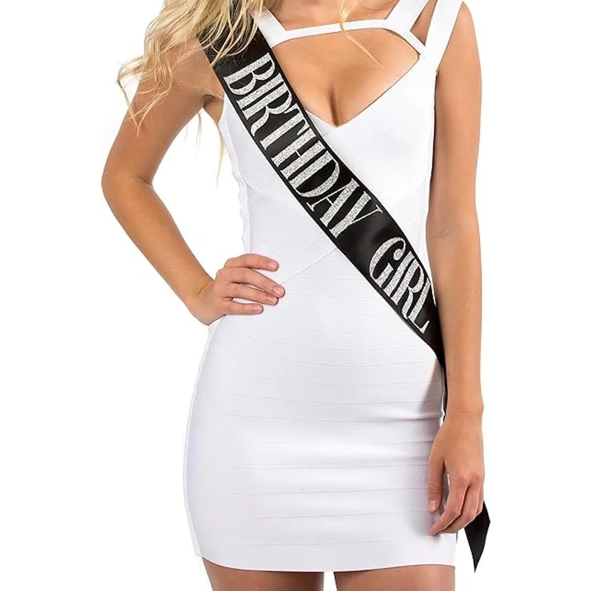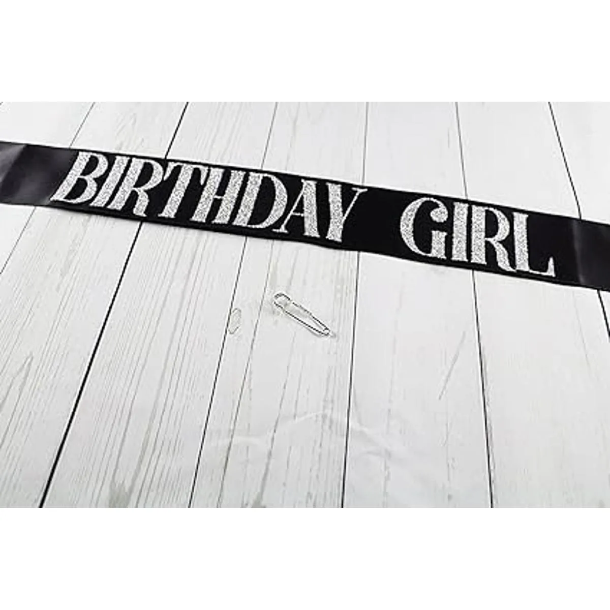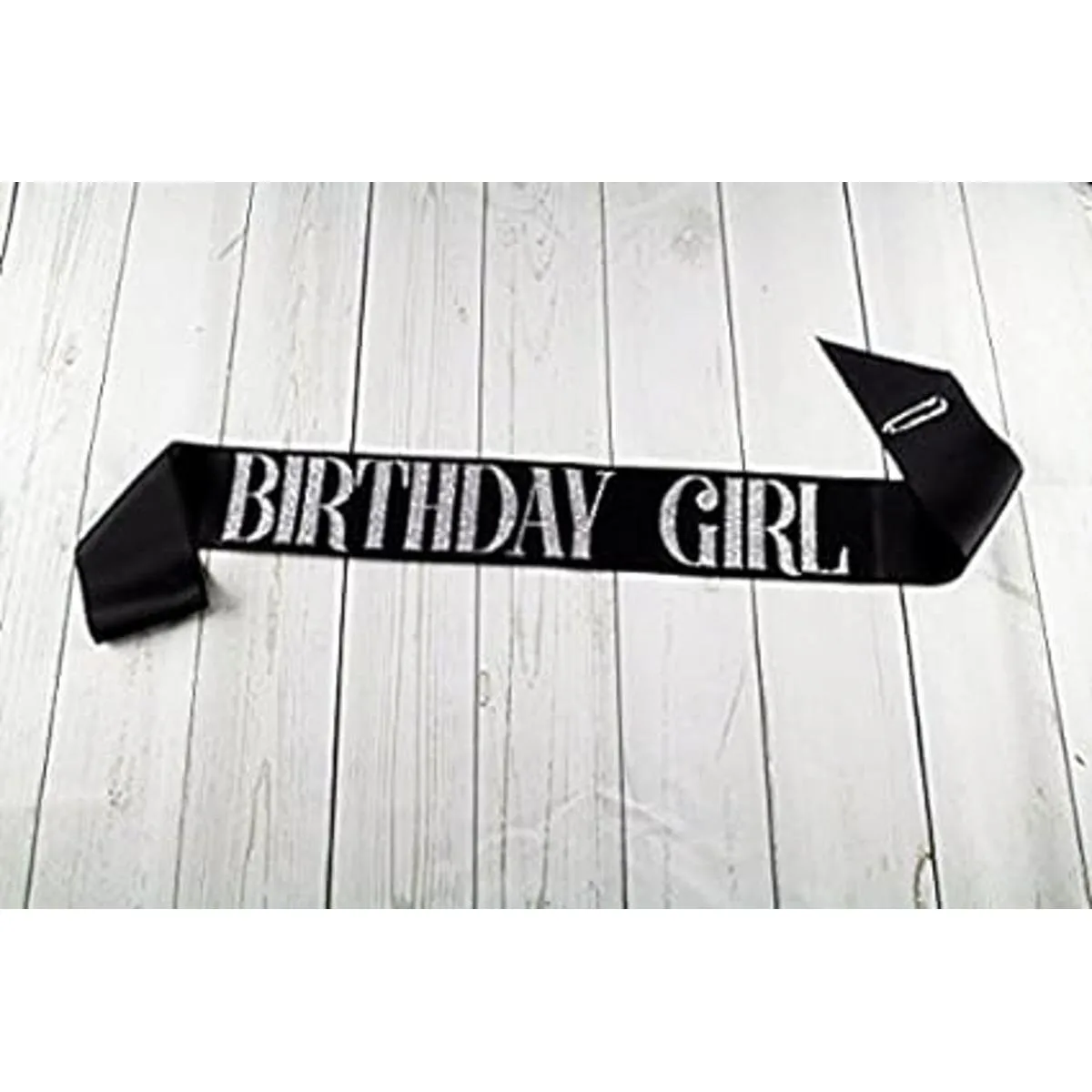 Negro Birthday Girl Sash con plata Embutida Glitter Fiesta de cumpleaños suministros por Dulcet Downtown