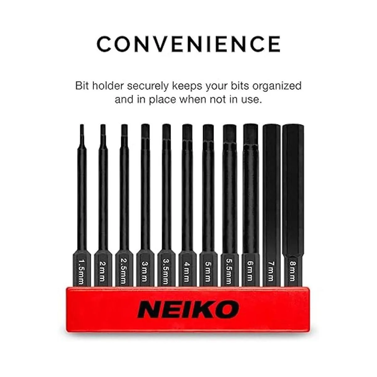 NEIKO 01148A Juego de brocas hexagonales Allen, 11 piezas de tamaños métricos de 0.059 in a 0.315 in, puntas magnéticas de cabeza hexagonal, 3 vástagos de liberación rápida, acero S2 de alta calidad, compatible con taladros eléctricos y controladores de impacto