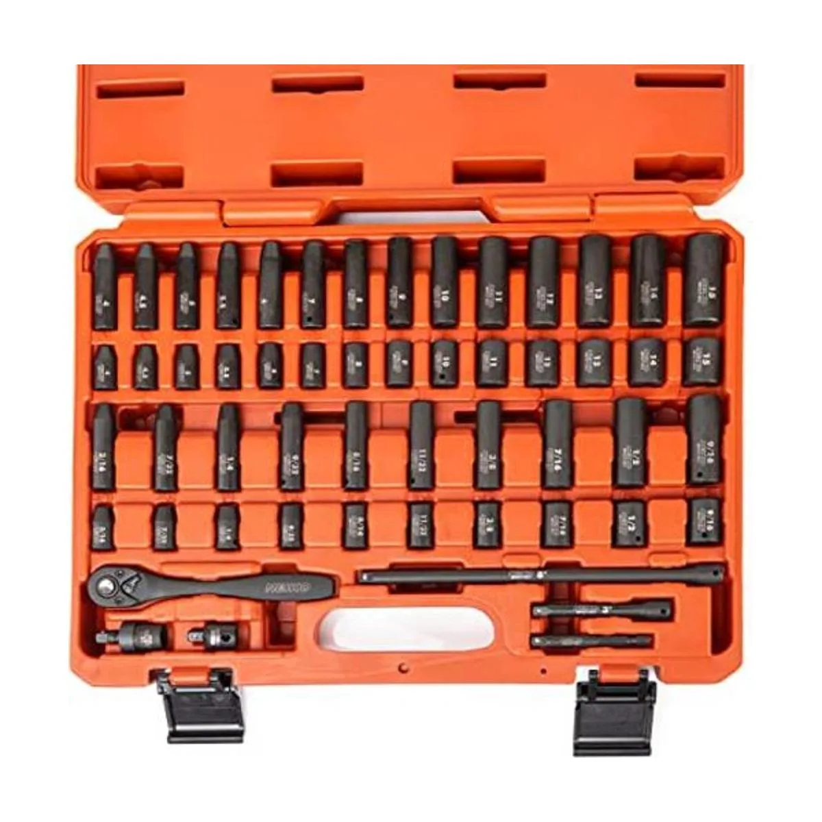 Tamaños de enchufe: 10 piezas de cada enchufe de impacto estándar y profundo en 3/16, 7/32, 1/4, 9/32, 5/16, 11/32, 3/8, 7/16, 1/2 y 9/16. ; 14 piezas de cada unidad de enchufes de impacto profundo y poco profundo en 0.157 in, 0.177 in, 0.217 in, 0.236 in, 0.276 in, 0.315 in, 0.354 in, 0.394 in, 0.433 in, 0.472 in, 0.512 in, 0.551 in y 0.591 in.