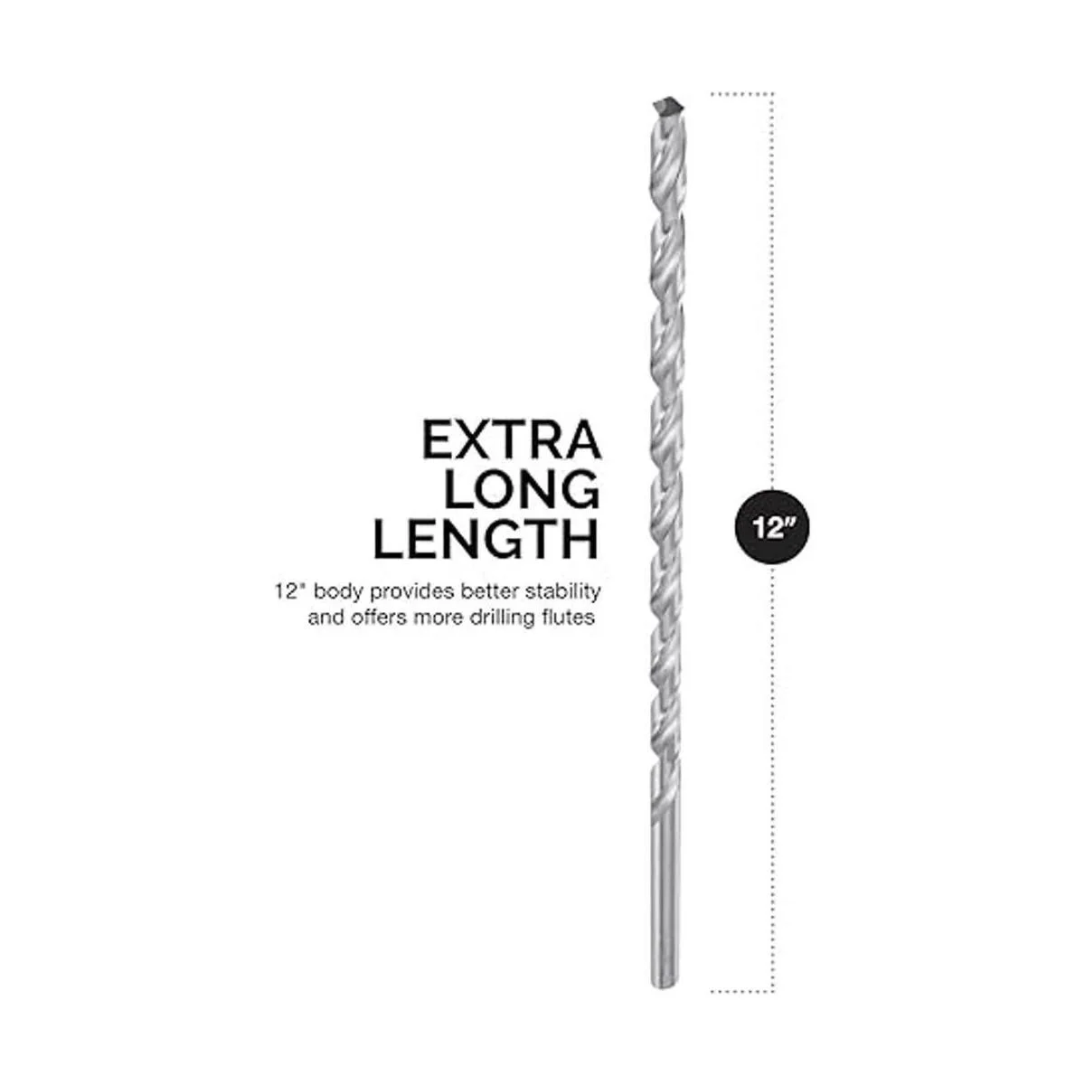 Neiko 10047A Juego de brocas extra largas de 12, 5 piezas 18, 316, 14, 516, 38