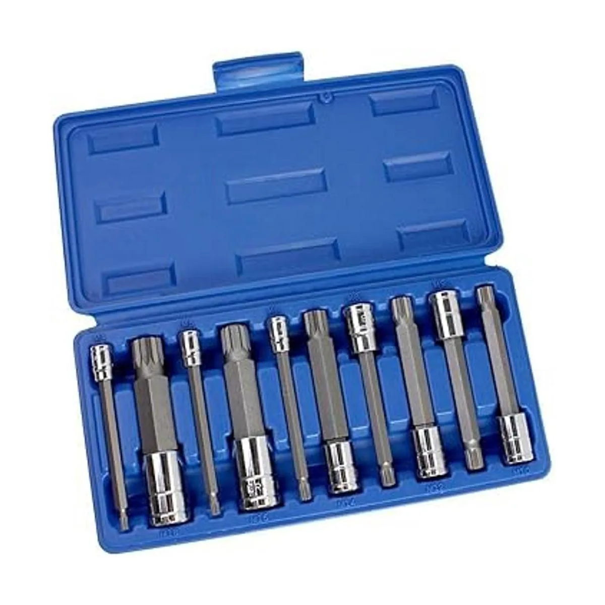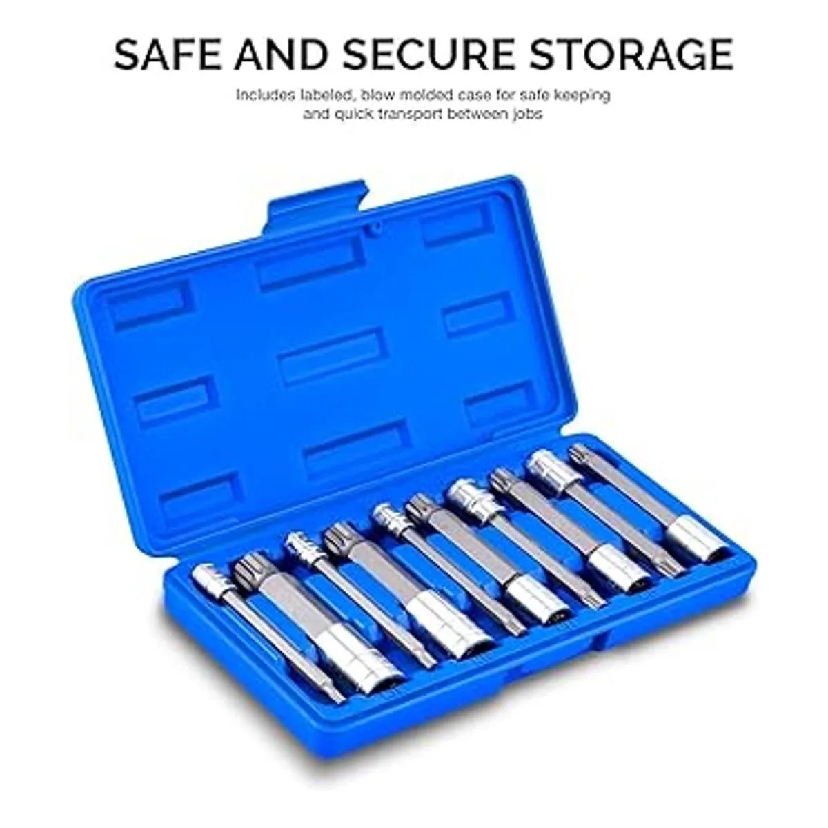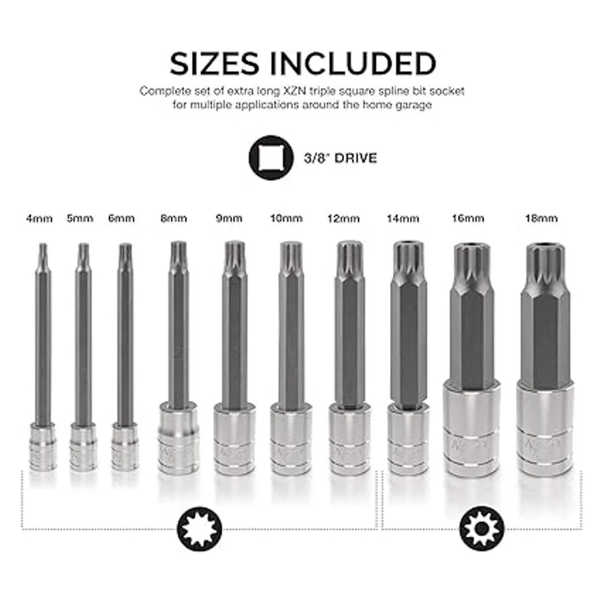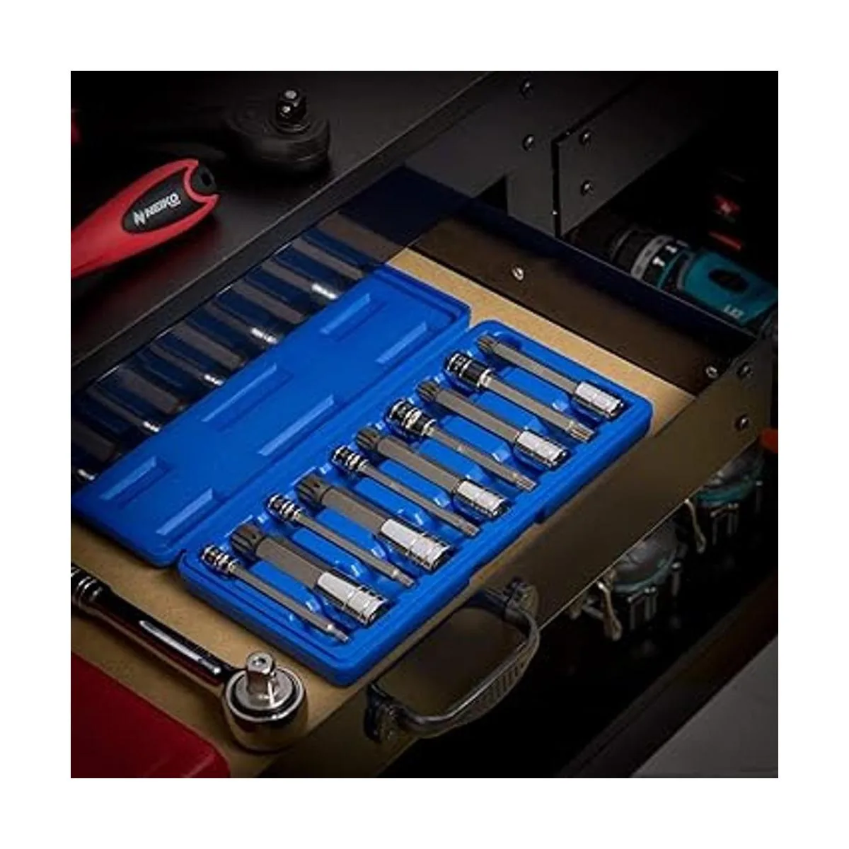 NEIKO 10054A XZN Juego de llaves de punta estriada triple cuadrada XZN Extra largo de 4 pulgadas 0.157 in a 0.709 in Juego de 10 piezas Acero S2 y CrV