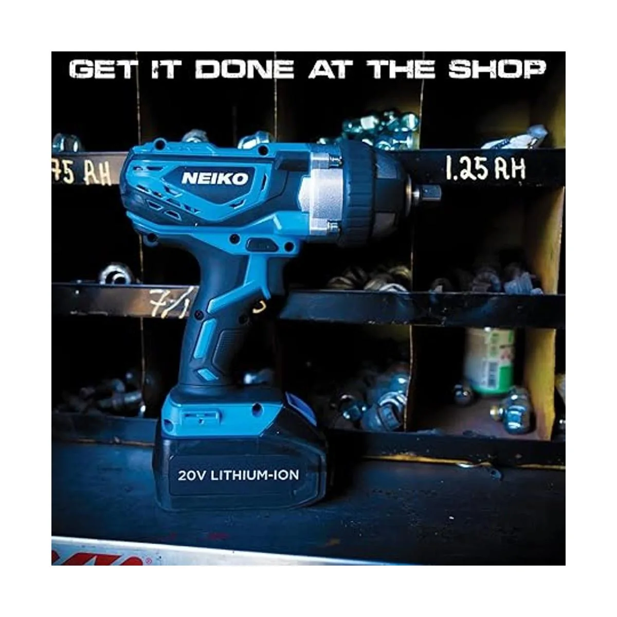 NEIKO 10878A Llave de impacto inalámbrica de 20 V 12 pulgadas, portabrocas de 12 pulgadas con batería, cargador rápido y enchufes de transmisión de 4 12 pulgadas, kit de llave de impacto eléctrica de alto par con potencia de par ajustable, pistola de impacto para coche